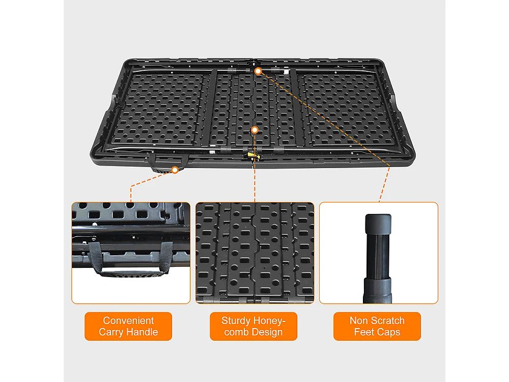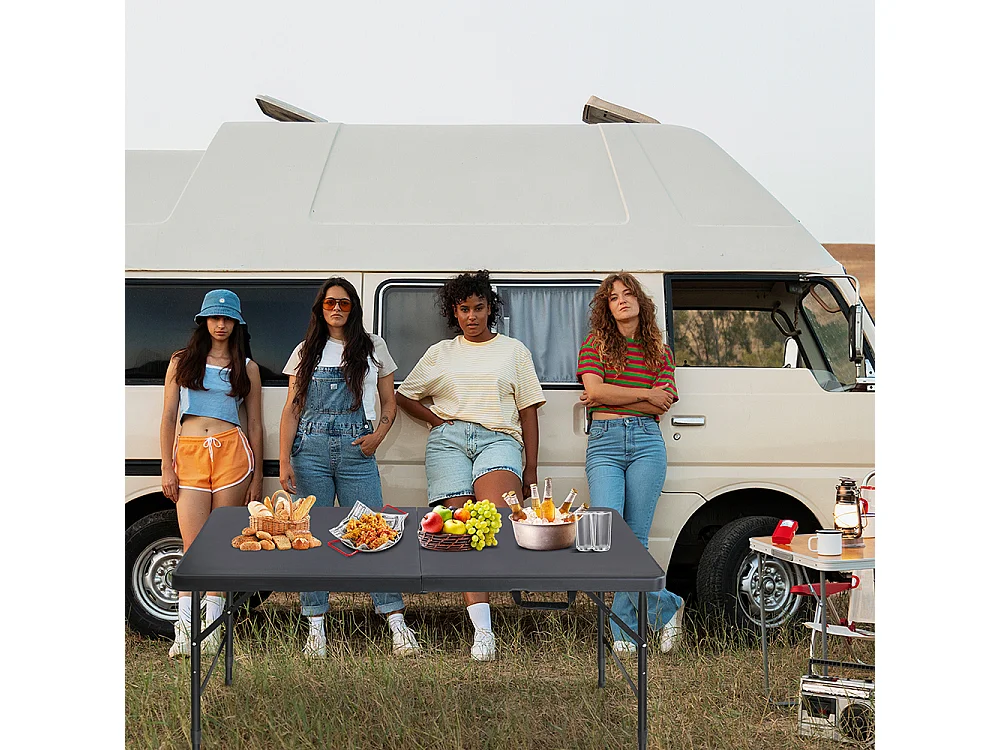Table pliante portable 125 cm robuste poignée hauteur réglable multifonction camping pique-nique fêtes intérieur extérieur charge 135 kg noir