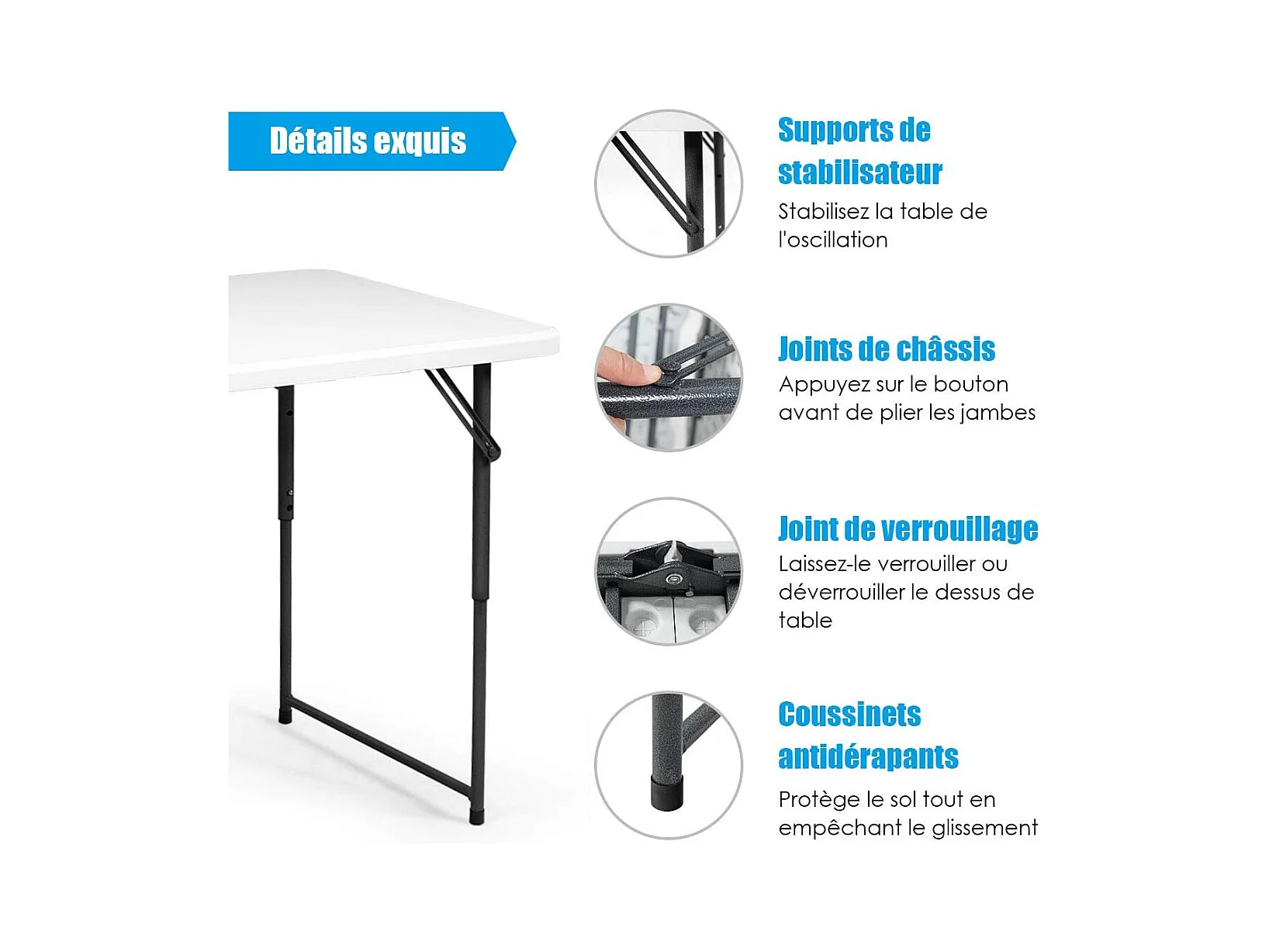 Table de camping Table Pliante Transportable en Plastique et Acier Robuste Table de Jardin 180 x 73 x 73 cm Blanche