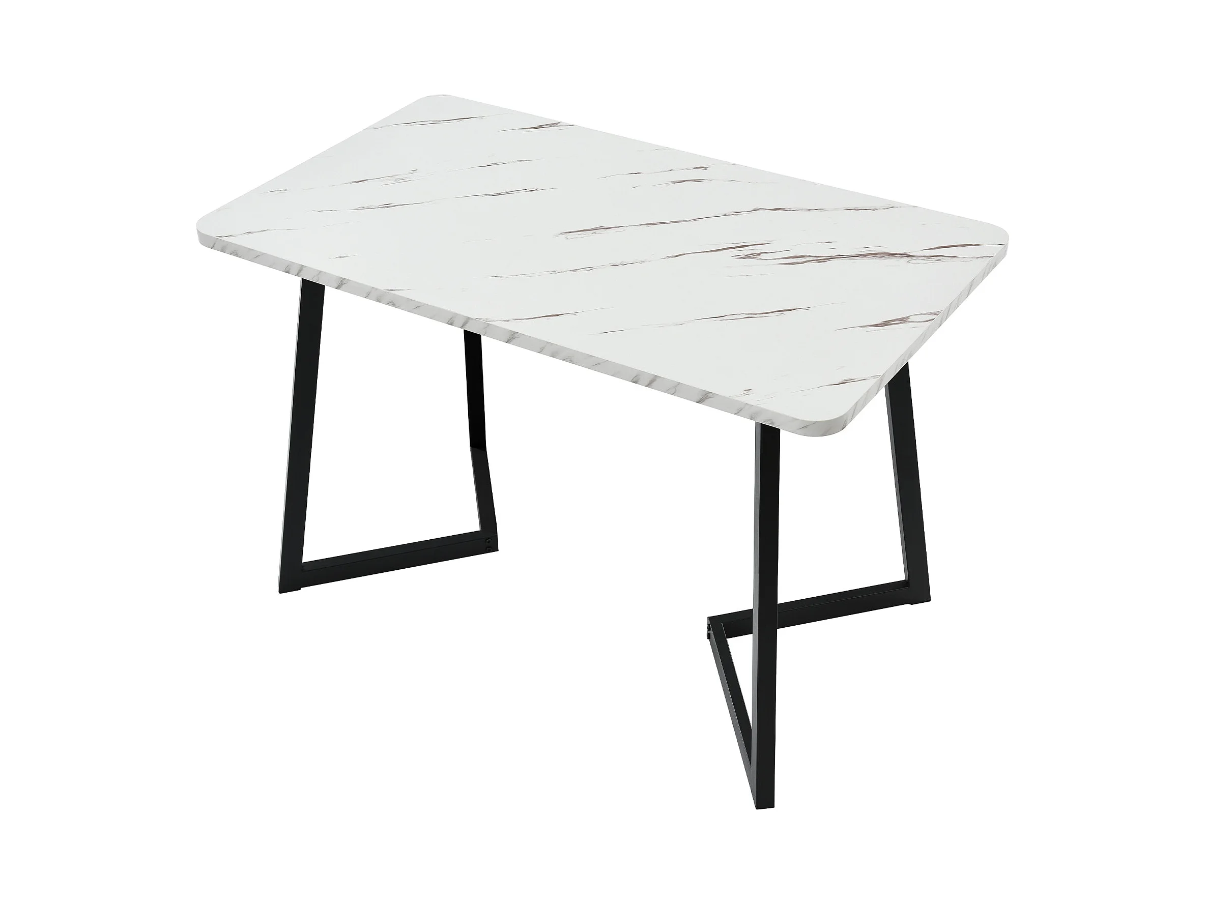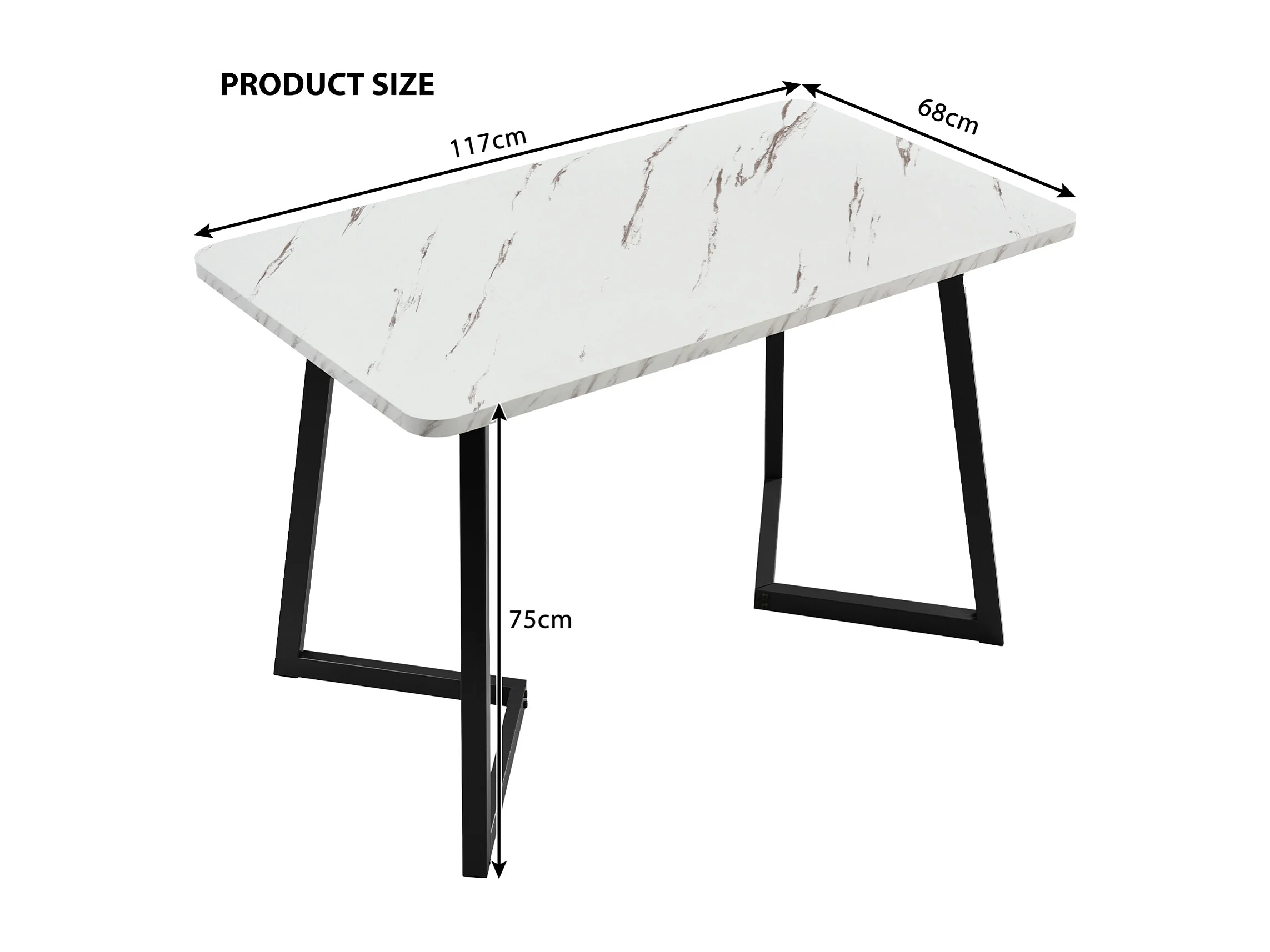 Table rectangulaire 117x68 cm, motif marbre blanc, noir pieds métalliques pour cuisine et salon