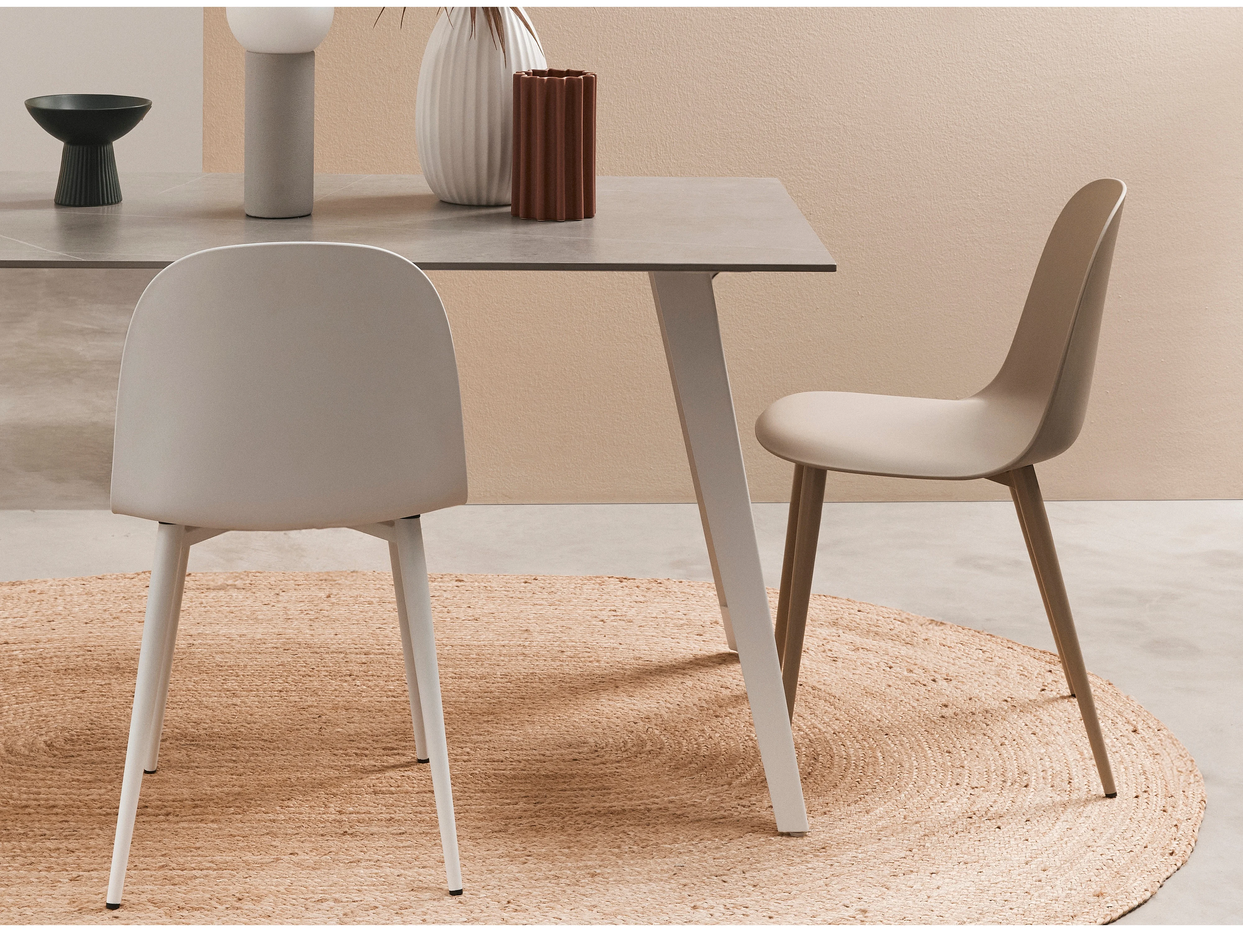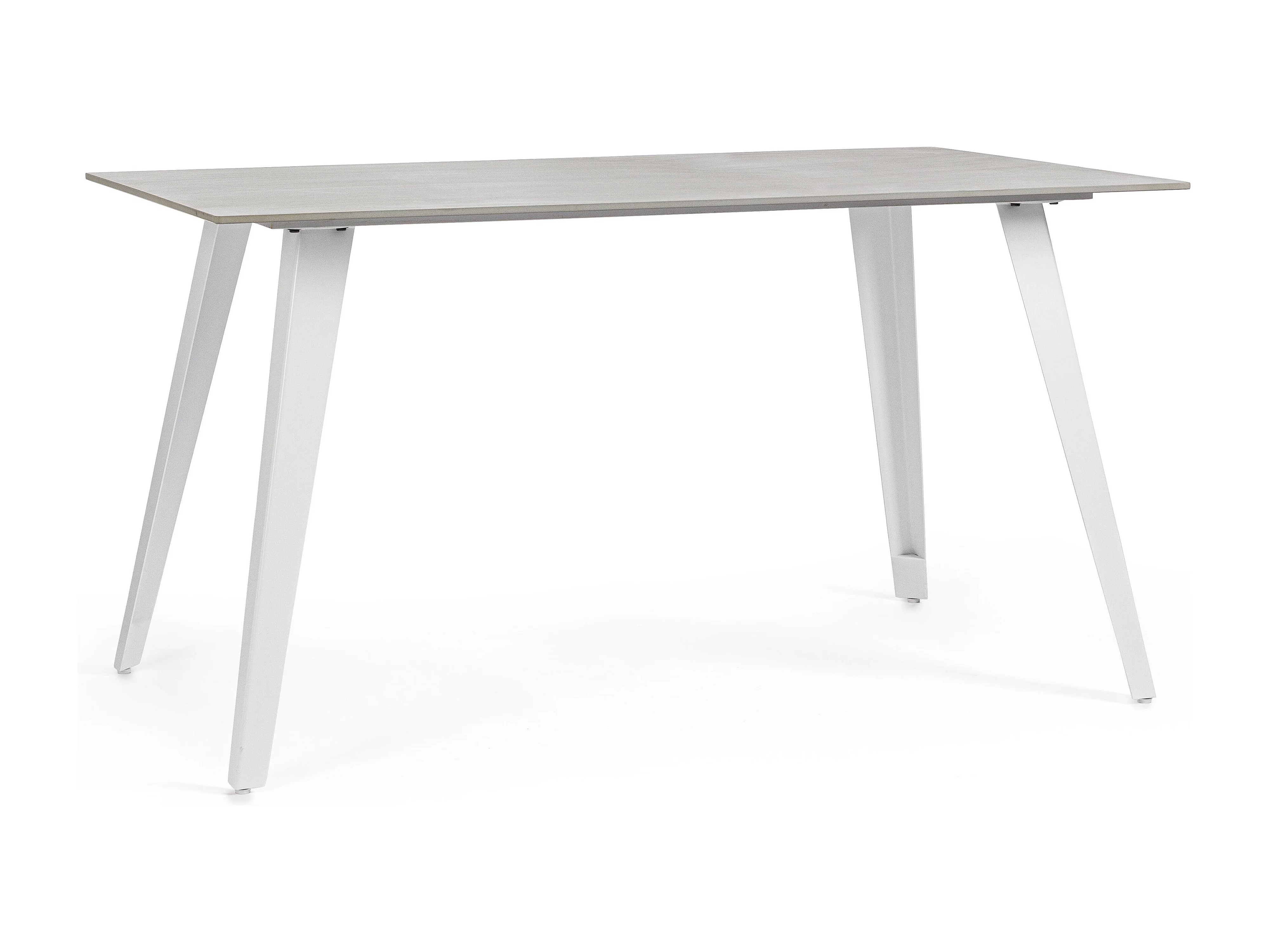 Table rectangulaire ARJETA 140cm – grès cérame effet marbre & pieds acier-Blanc