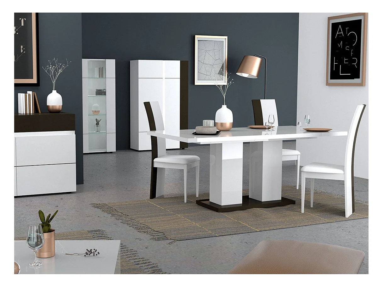 Table rectangulaire bois laqué blanc et noir Koyd 180cm