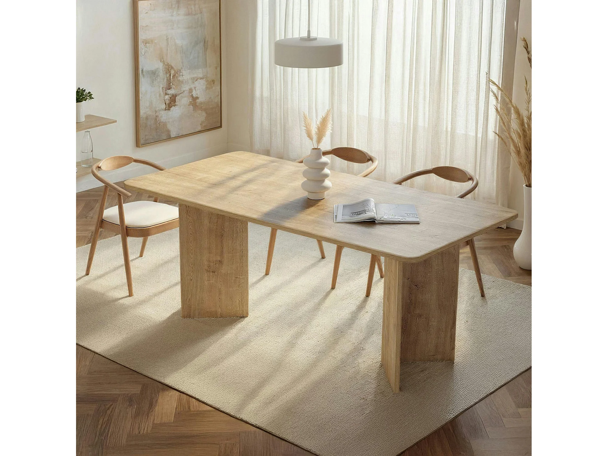 Table rectangulaire bords ronds effet chêne clair 180 cm MARFA