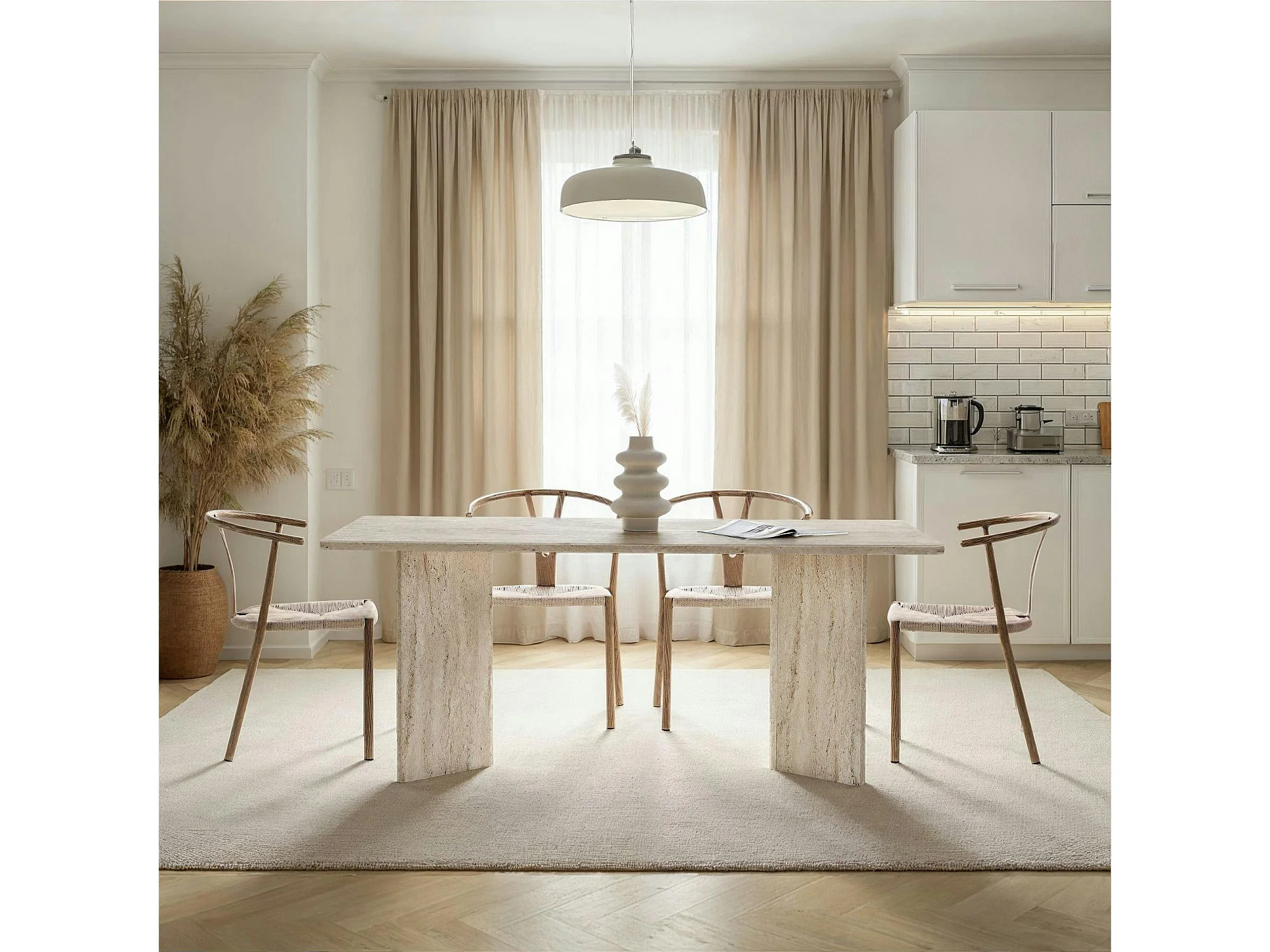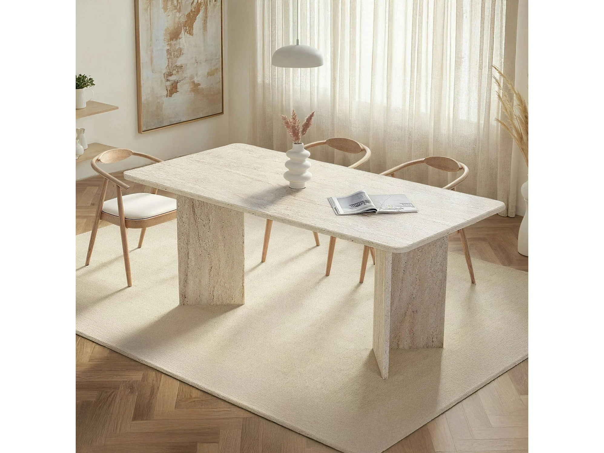 Table rectangulaire bords ronds effet travertin 180 cm MARFA