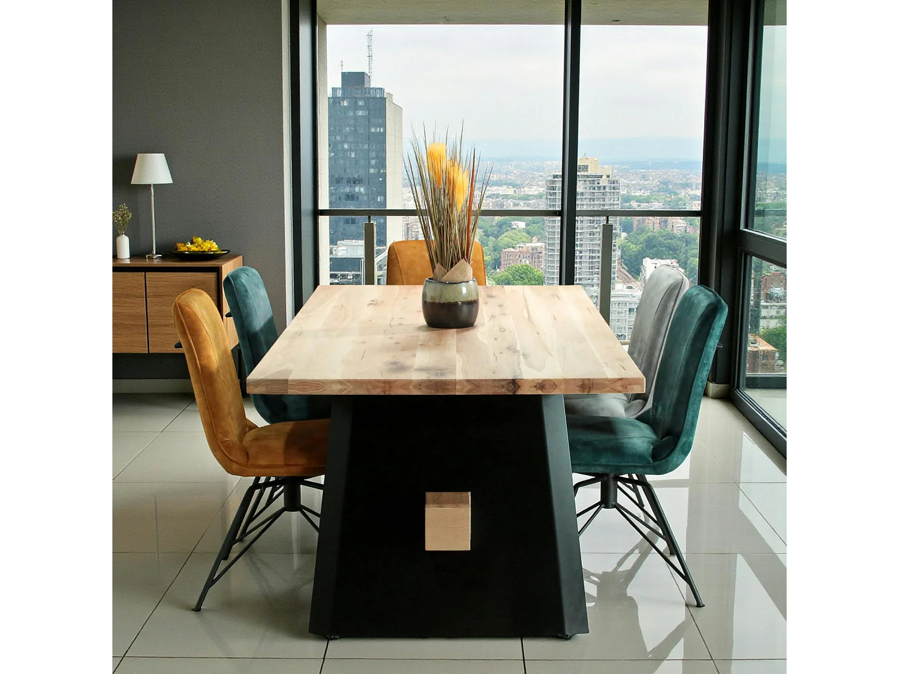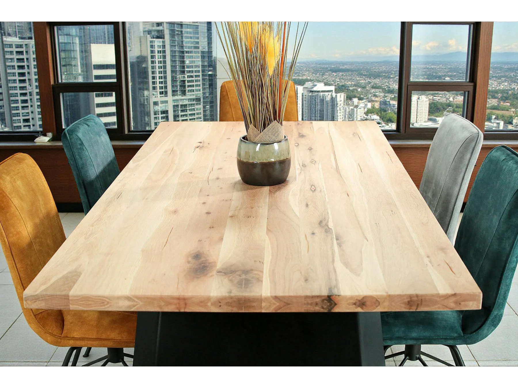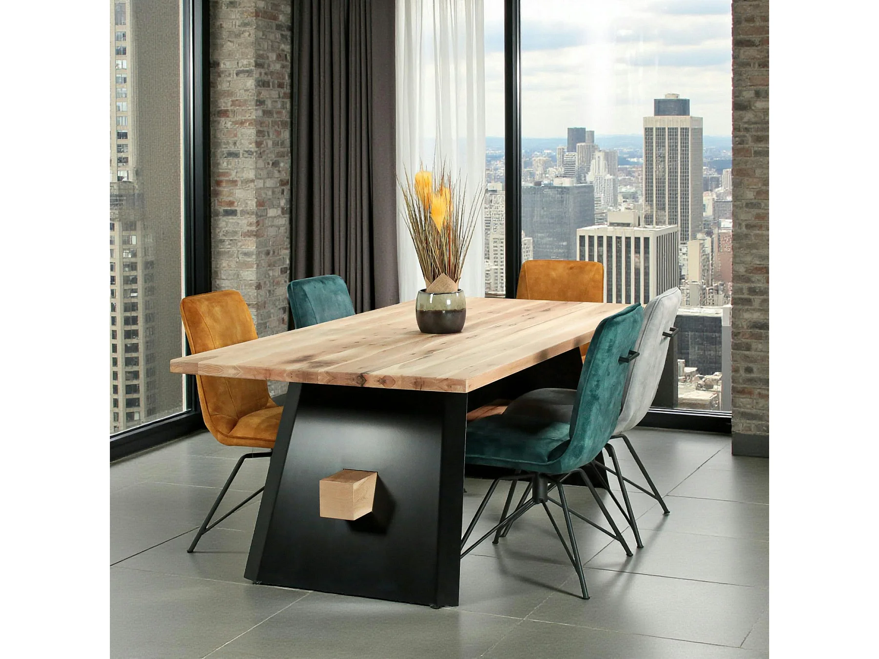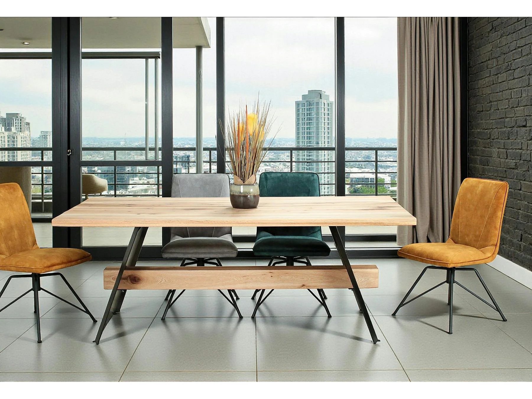 Table rectangulaire en chêne blanc avec poutre centrale 200 cm CORNWALL