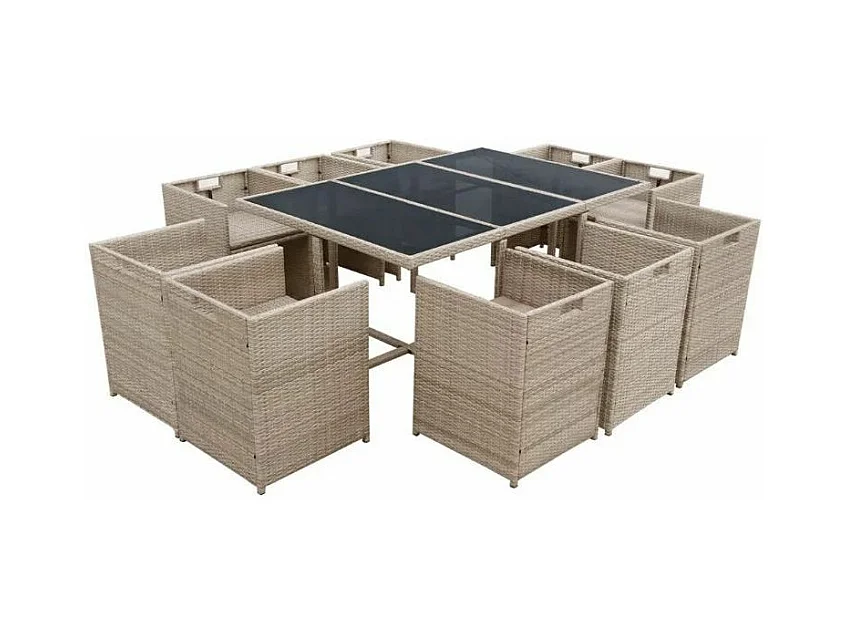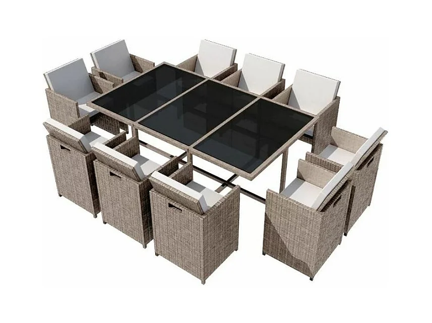 Table rectangulaire et 10 chaises de jardin résine tressée beige Iris