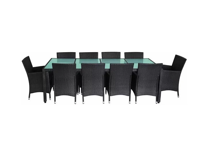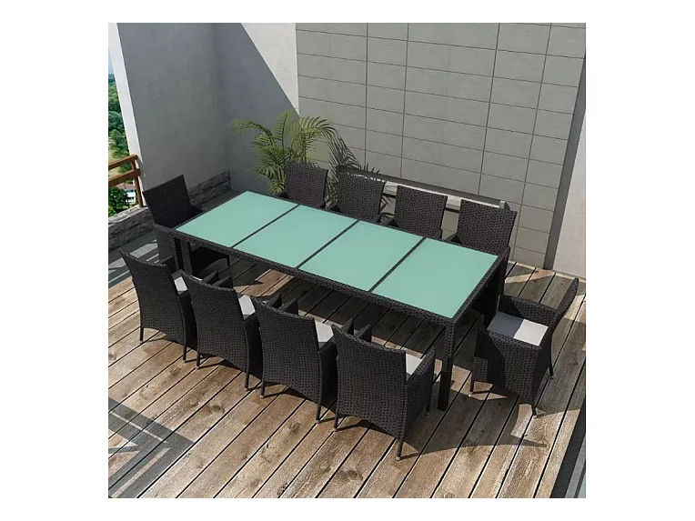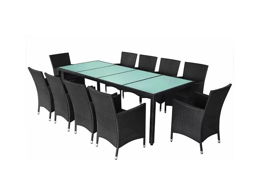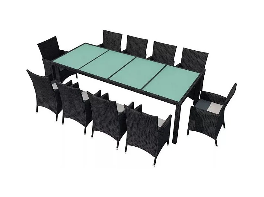 Table rectangulaire et 10 chaises de jardin résine tressée noir Mik