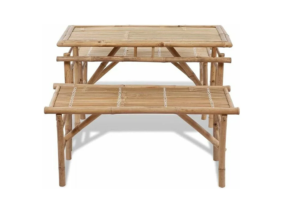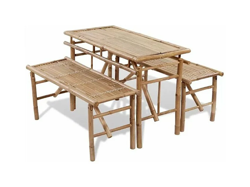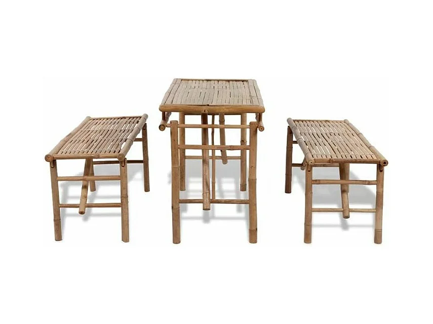 Table rectangulaire et 2 bancs de jardin bambou clair Kyca