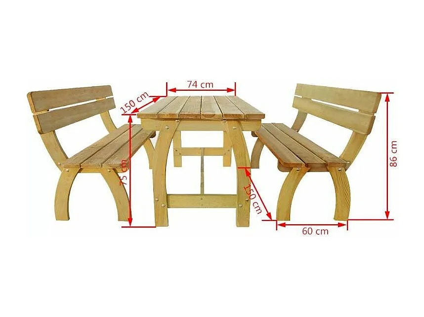 Table rectangulaire et 2 bancs de jardin pin massif clair Stylie
