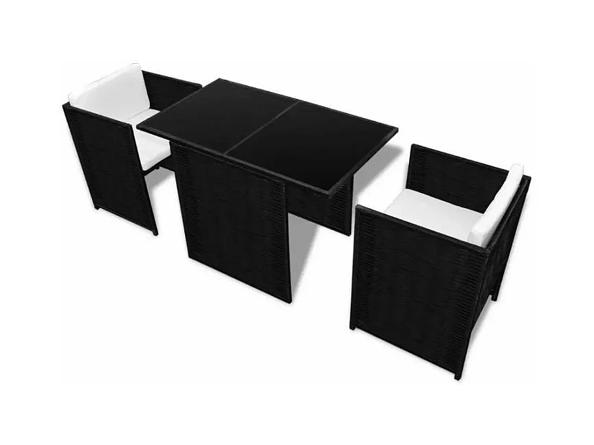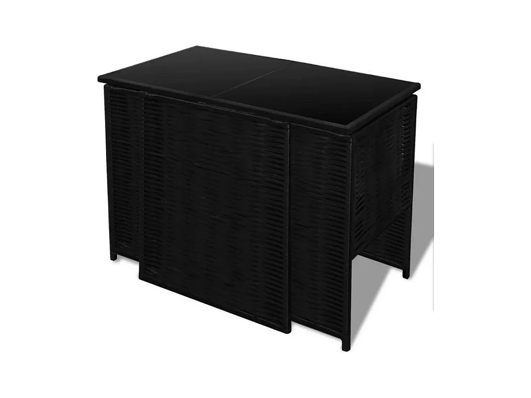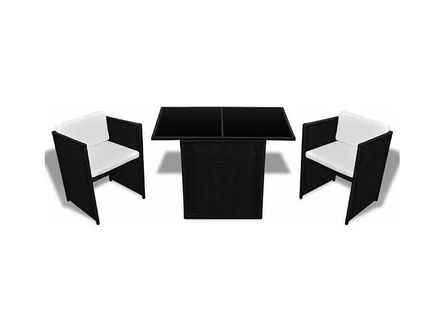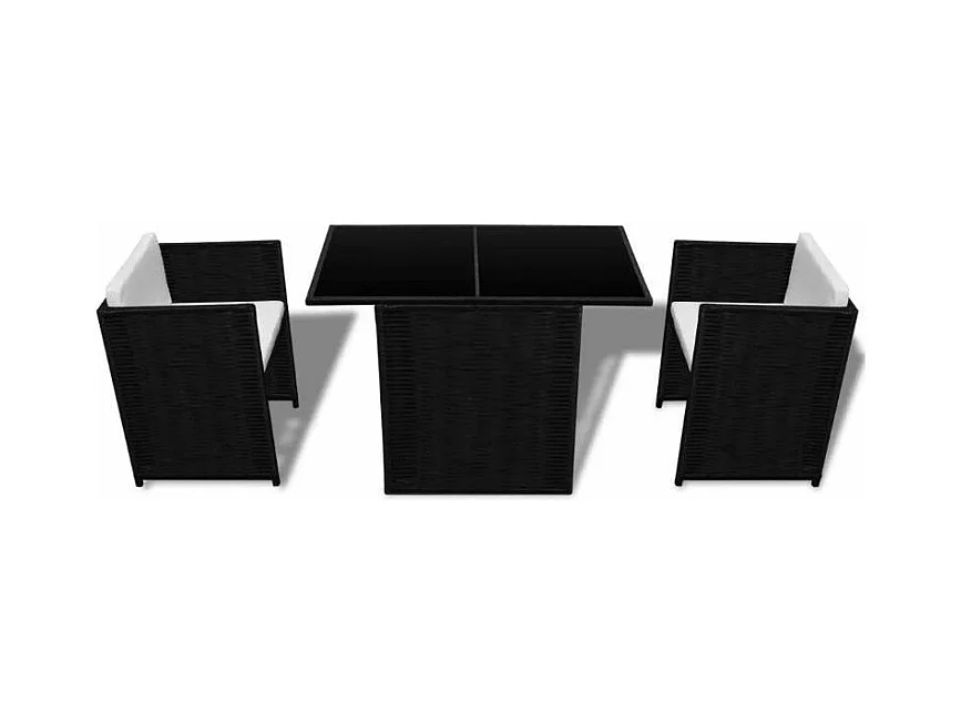 Table rectangulaire et 2 chaises de jardin résine tressée noir Boo