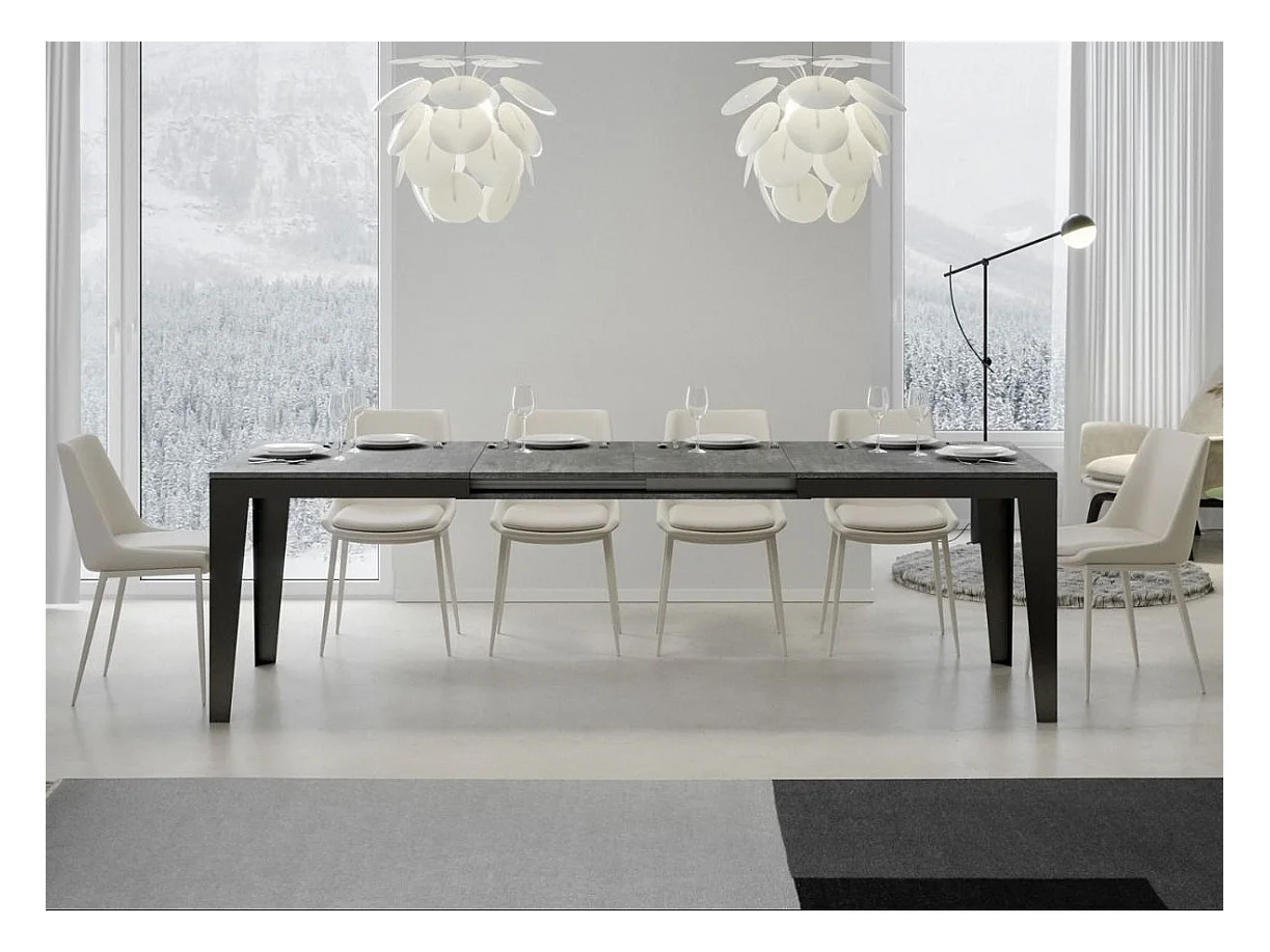 Table rectangulaire extensible 6 à 14 places L 180 à 284cm gris effet béton et pieds acier gris foncé Flavien
