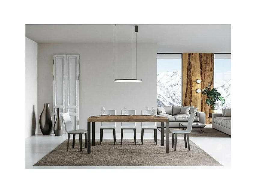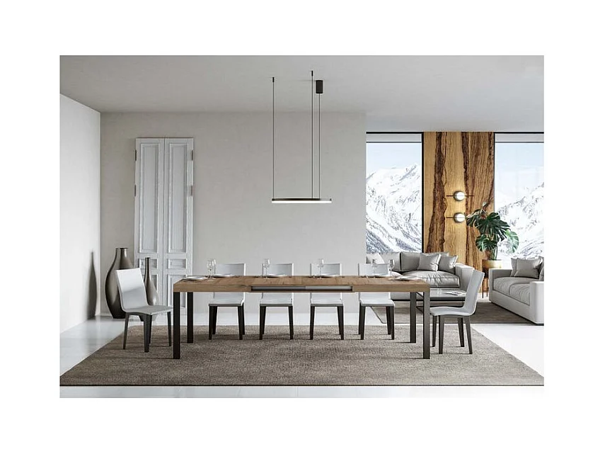 Table à manger extensible Karry-Couleur Naturel-4 pieds-160 à 420cm