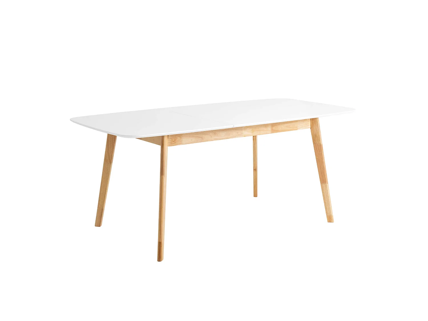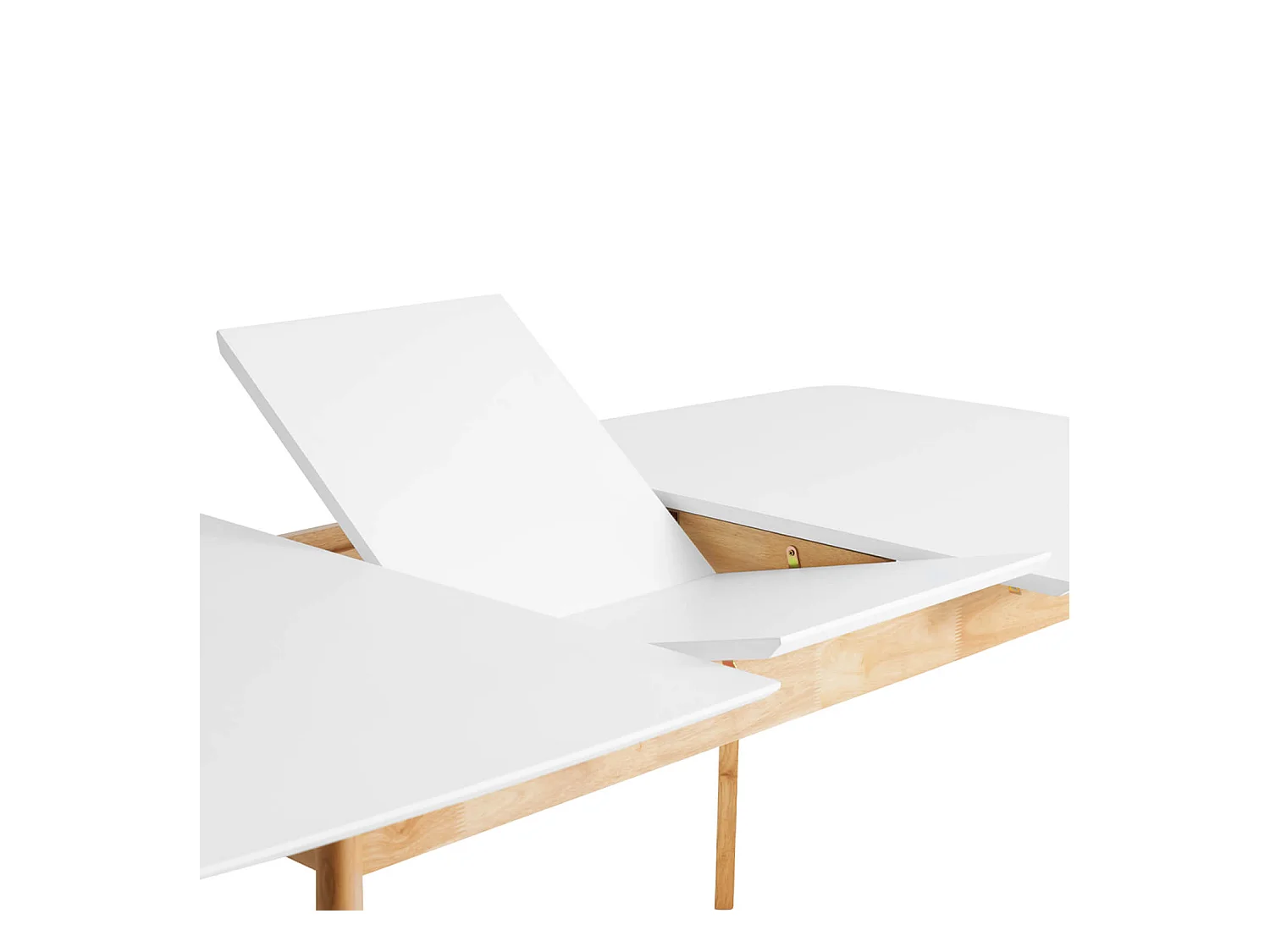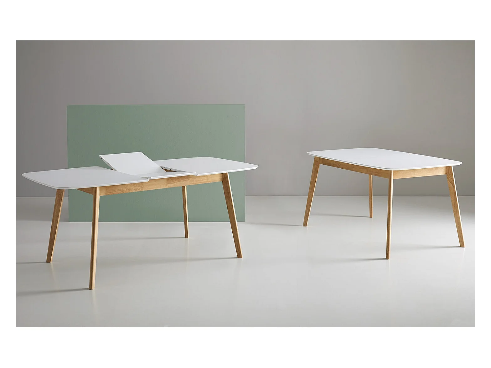 Table rectangulaire extensible scandinave blanc brillant et pieds bois clair Askin 140 à 180cm