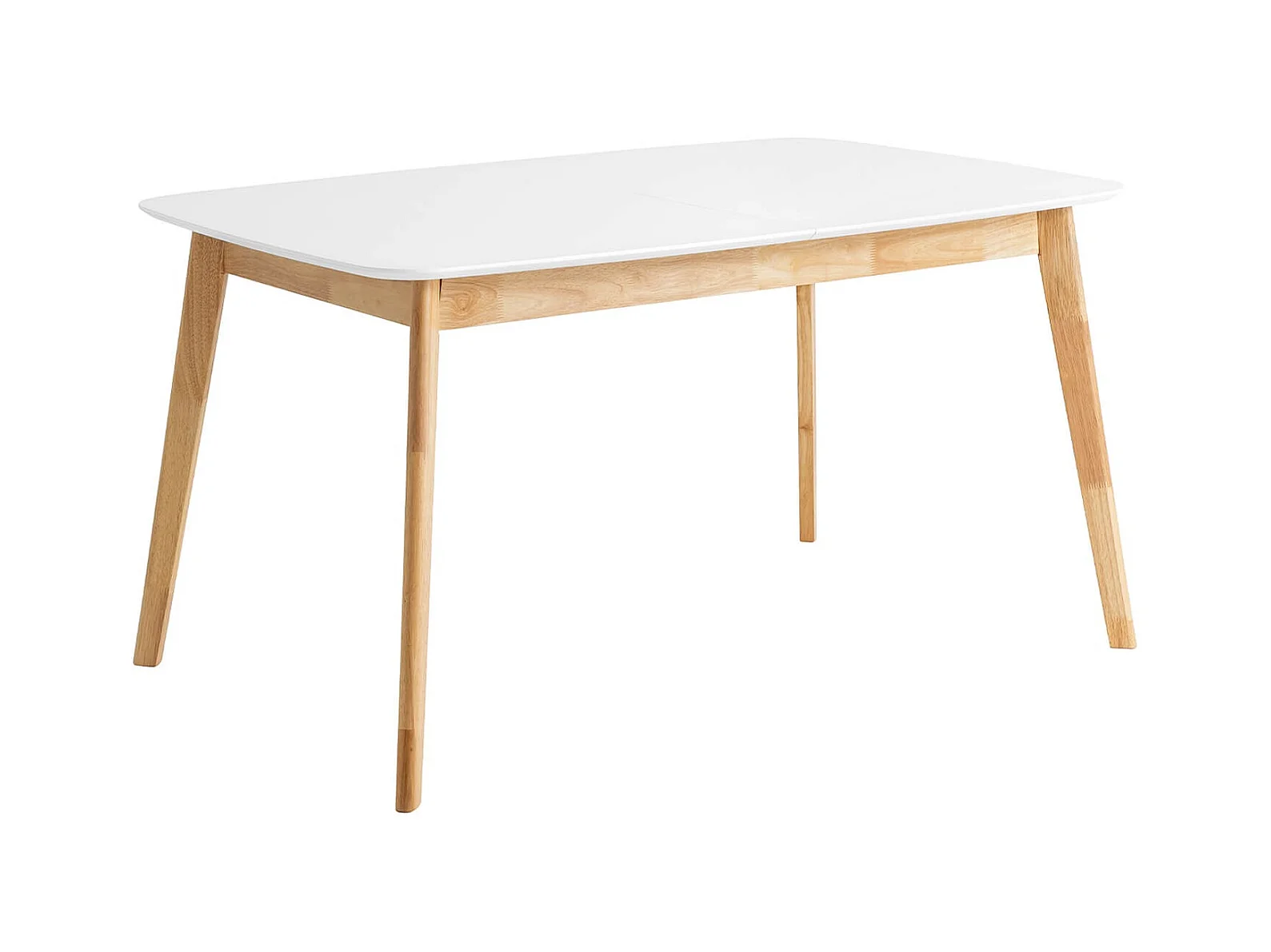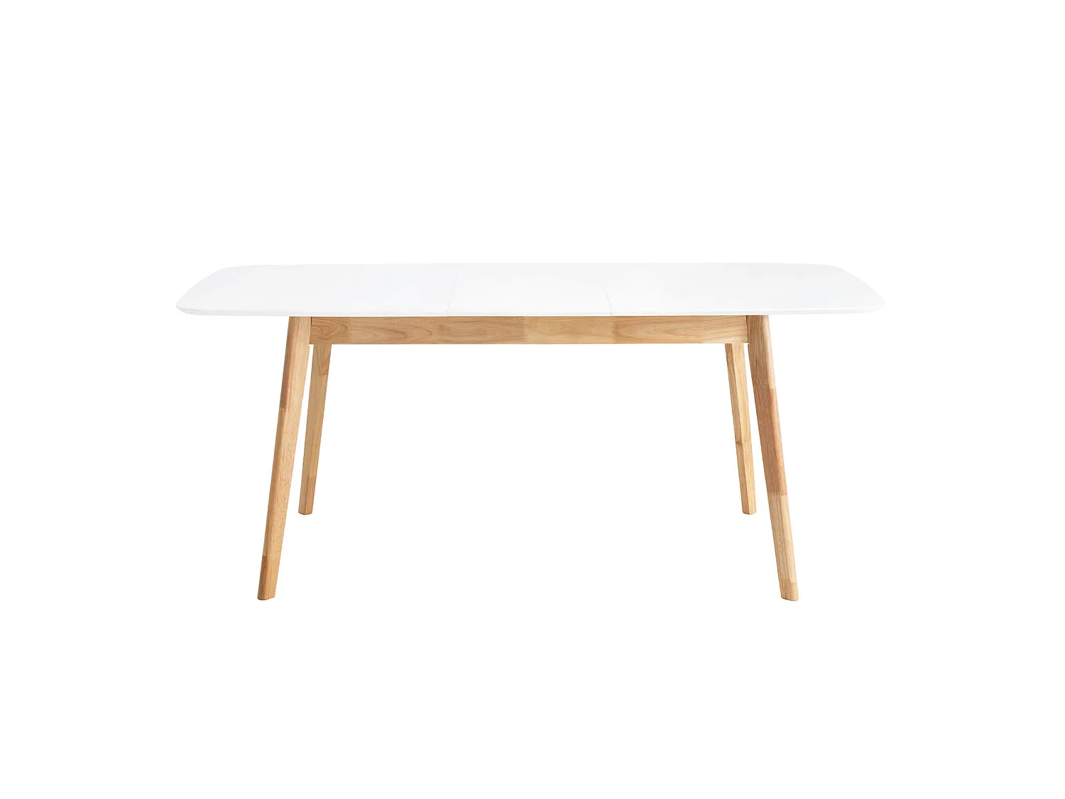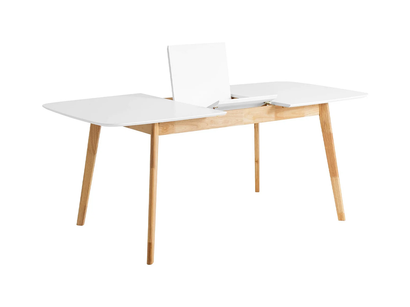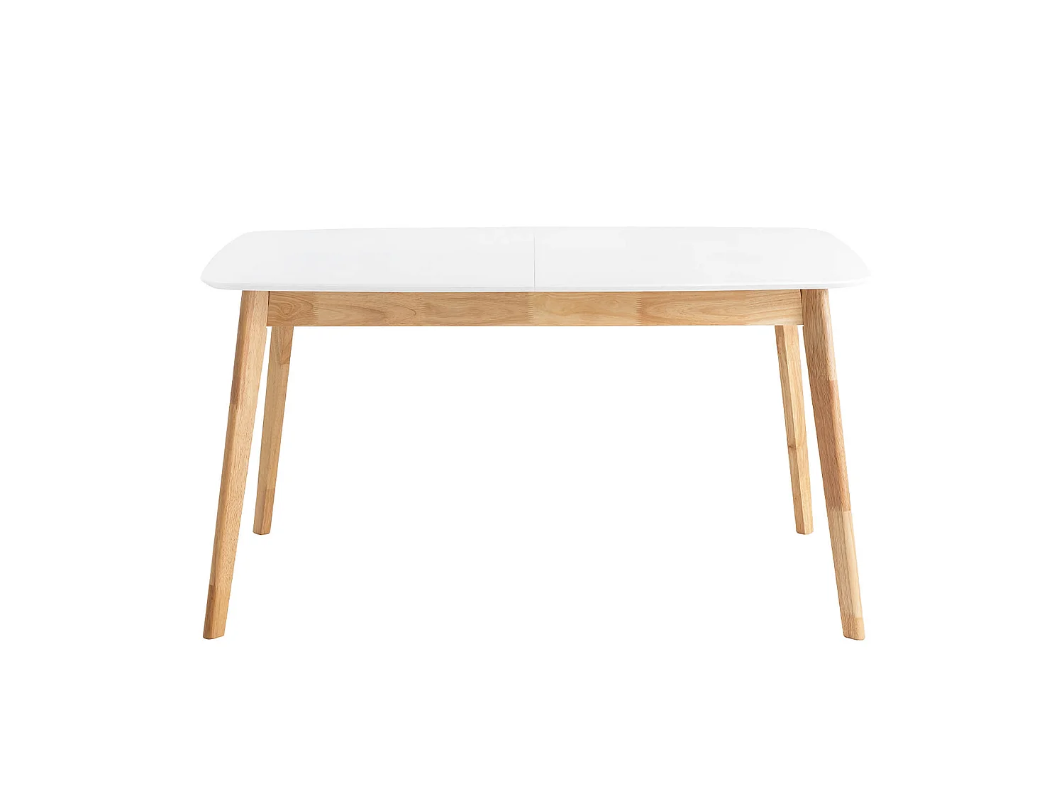 Table rectangulaire extensible scandinave blanc brillant et pieds bois clair Askin 140 à 180cm