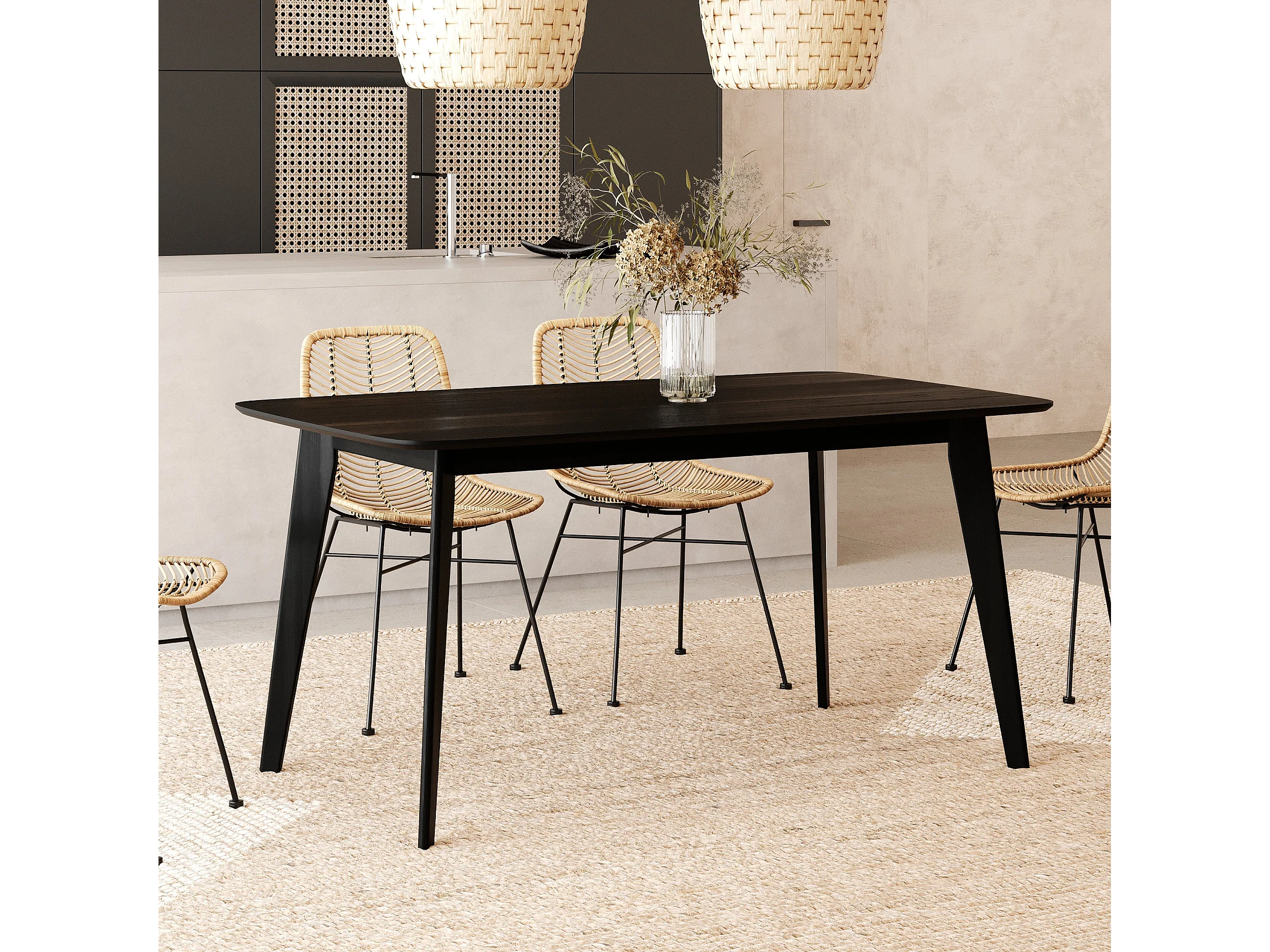Table rectangulaire 6 personnes en bois noir 150 cm - Oman