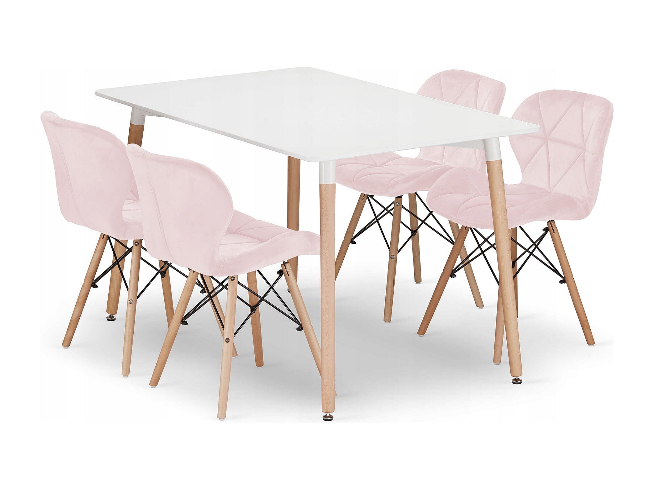 Table rectangulaire Valora YURO 120x80 blanche + 4 chaises WAKO roses