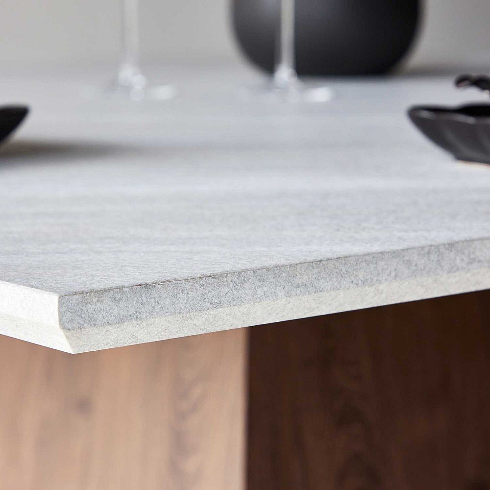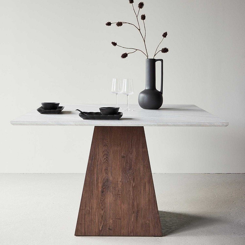 Table repas en MDF plateau effet pierre Cael 120 x 120 x 75 cm
