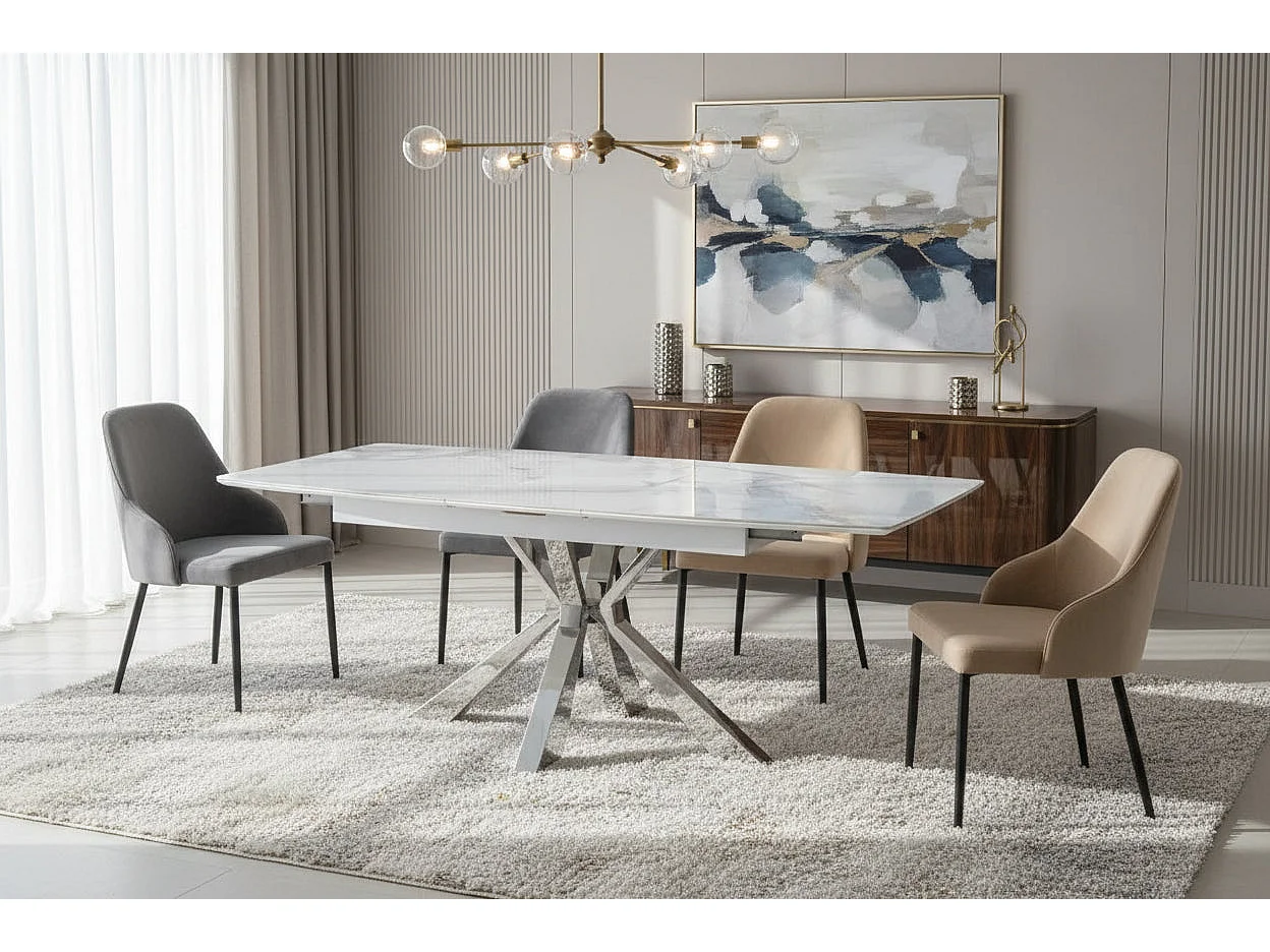 Table à manger extensible plateau Céramique Marbré blanc Chrome -BIANCA