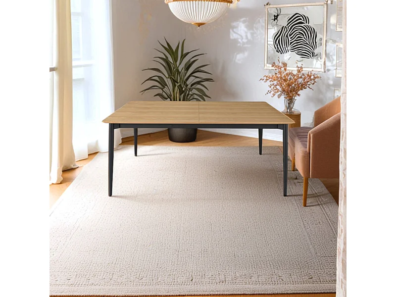 Table repas extensible 200/300 cm placage bois et pieds métal – JOLENE