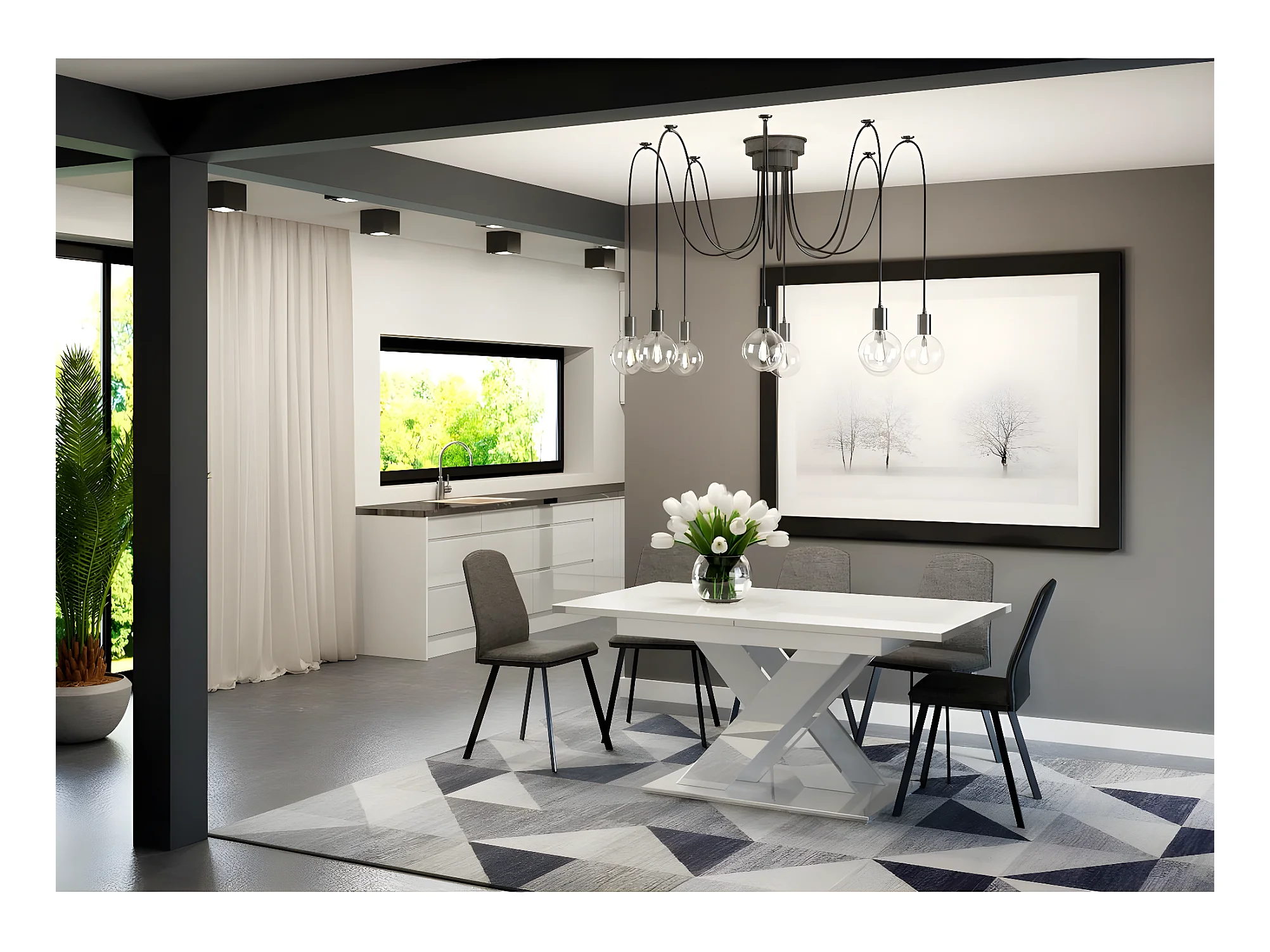 Table repas extensible "Bronx" - 140/180 x 80 x 75 cm - Blanc brillant