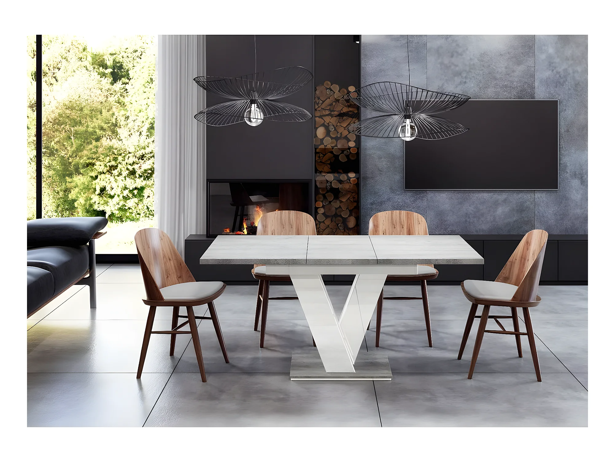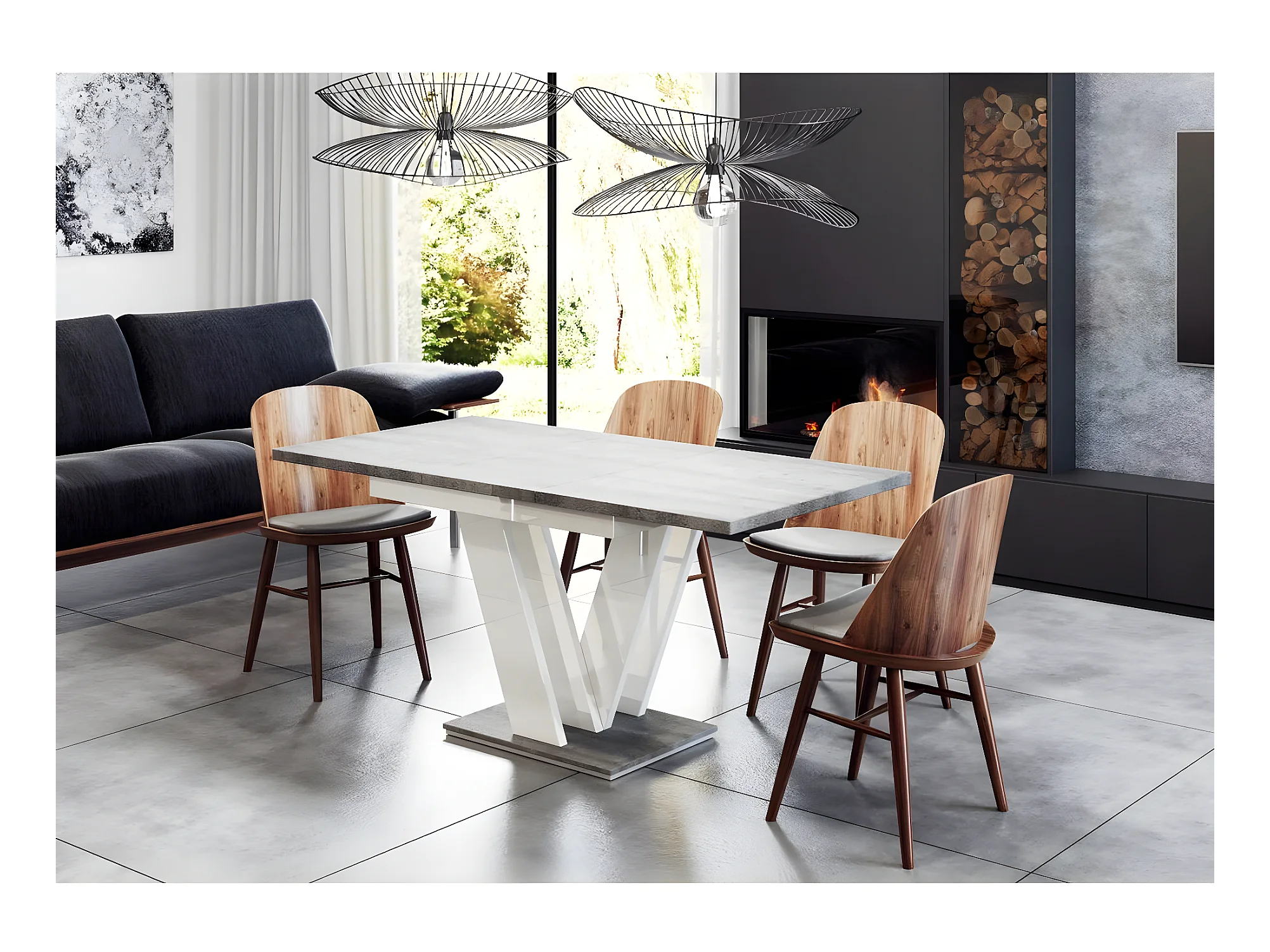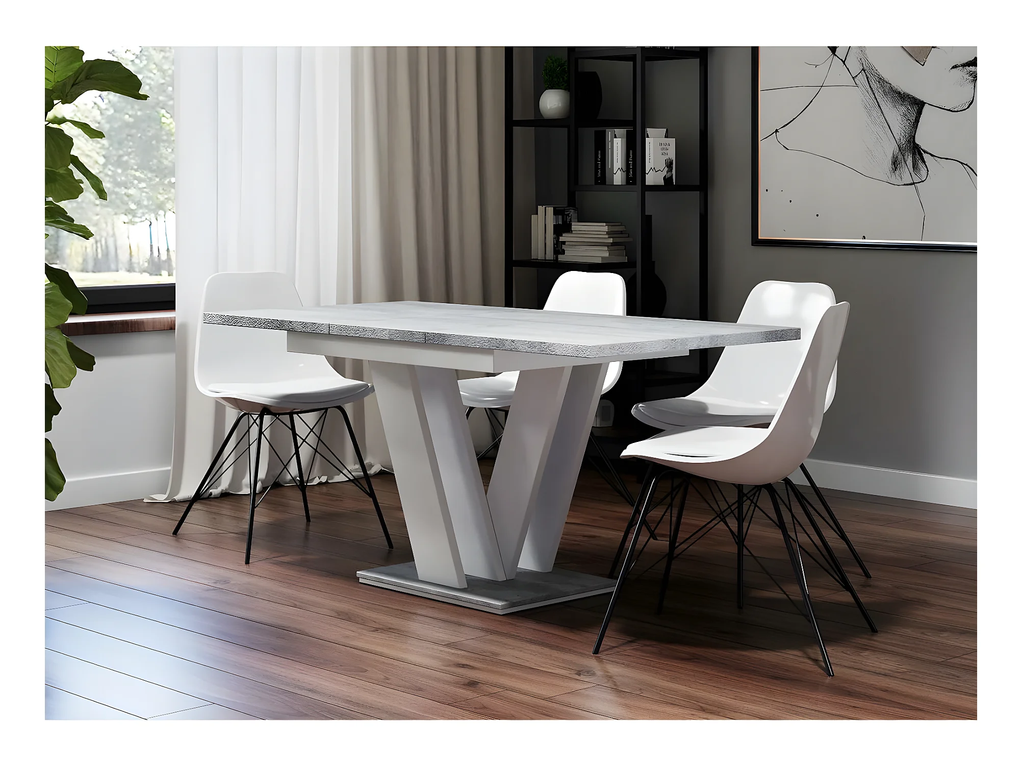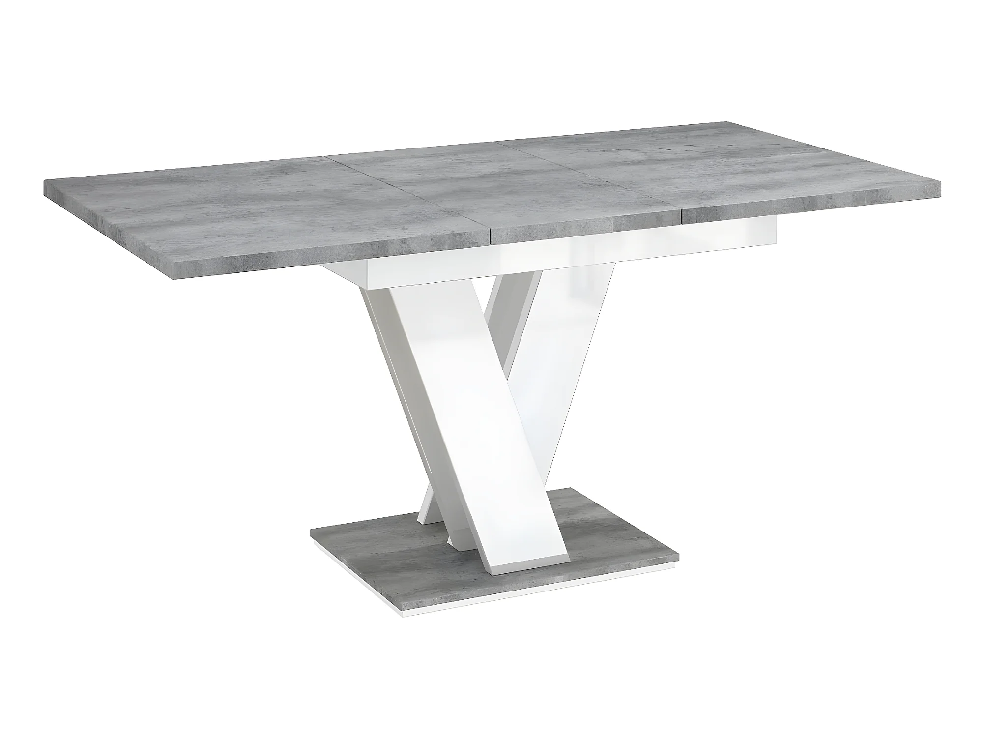 Table repas extensible "Masiv" - 120/160 x 80 x 75 cm - Béton/Blanc brillant