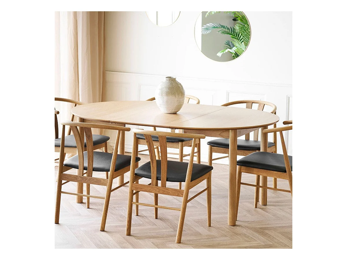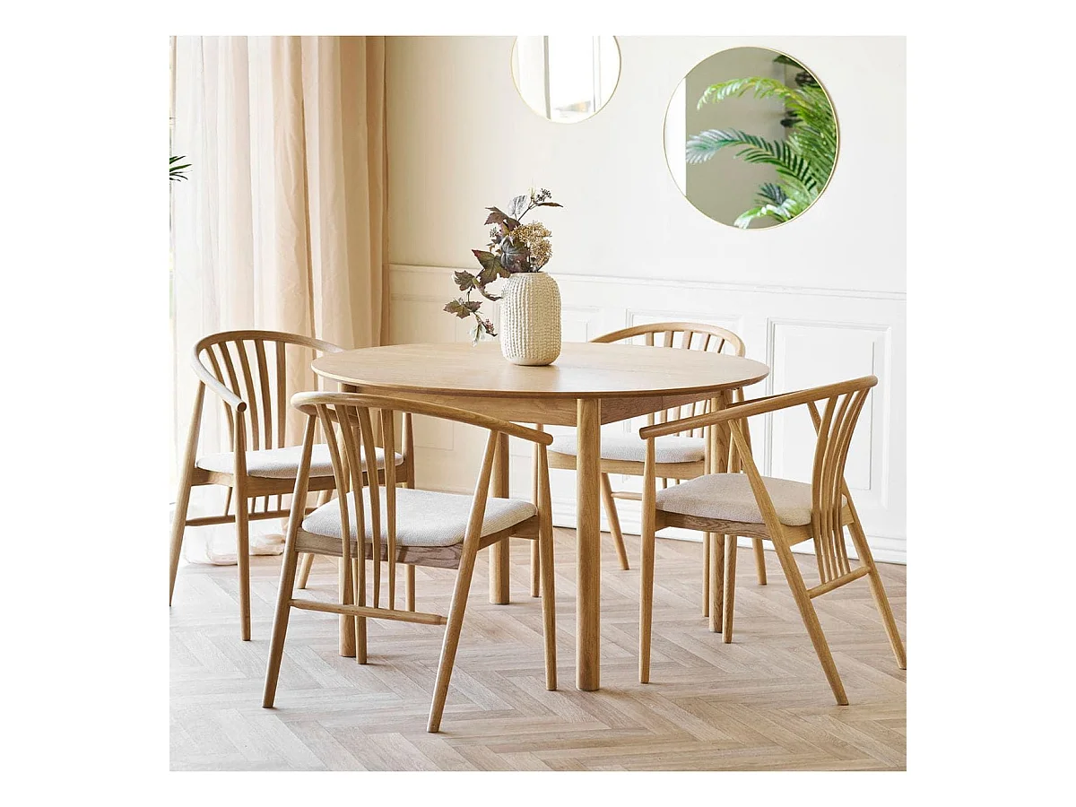 Table repas extensible Ø120cm en MDF et chêne naturel - YANICK