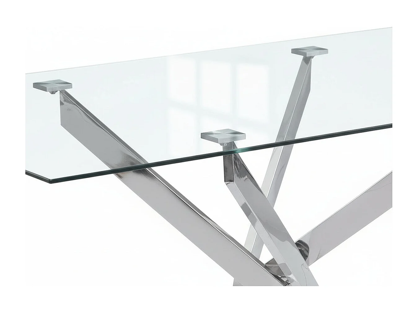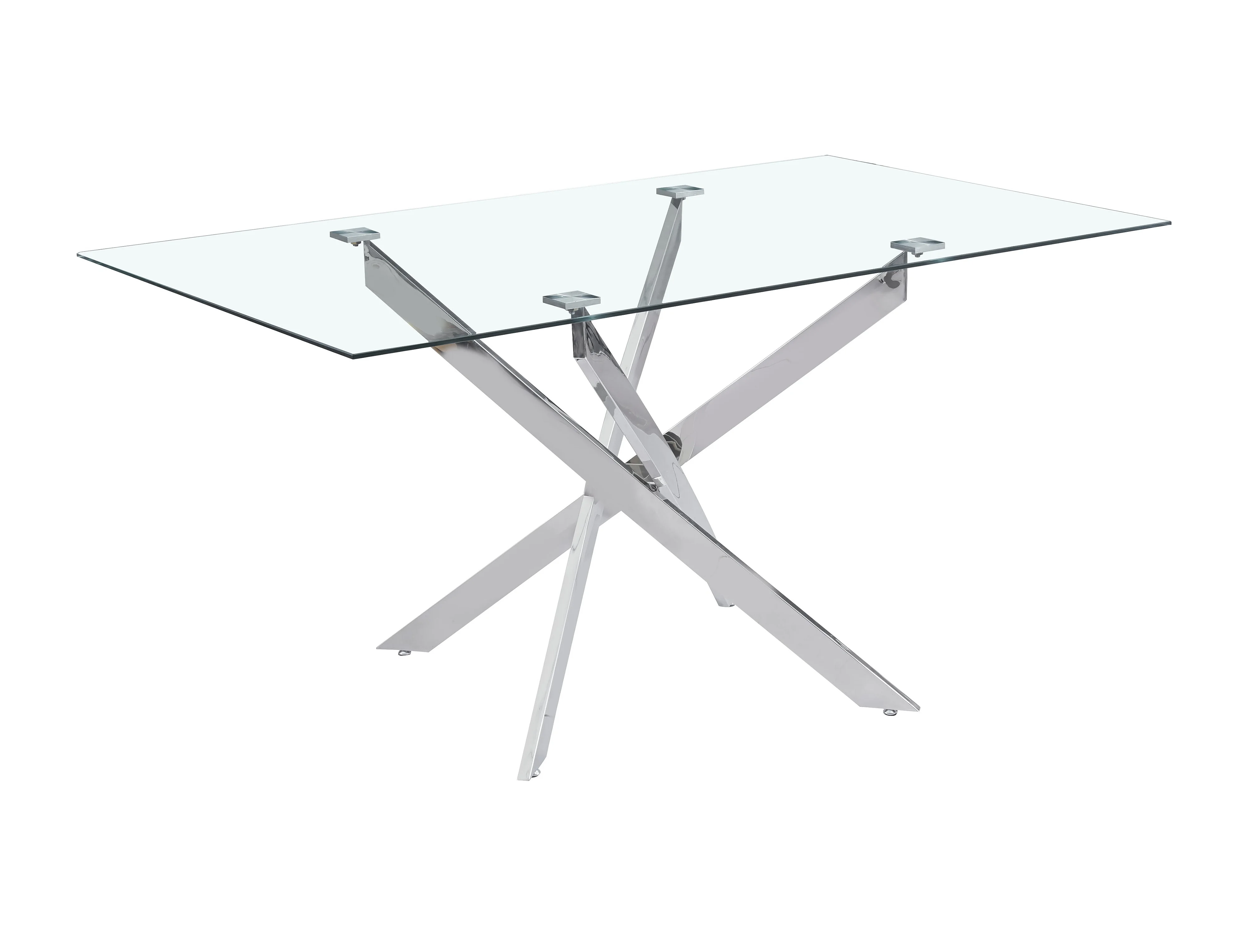 Table Repas JESSICA Chrome et plateau en verre 150 cm 4 à 6 couverts transparent