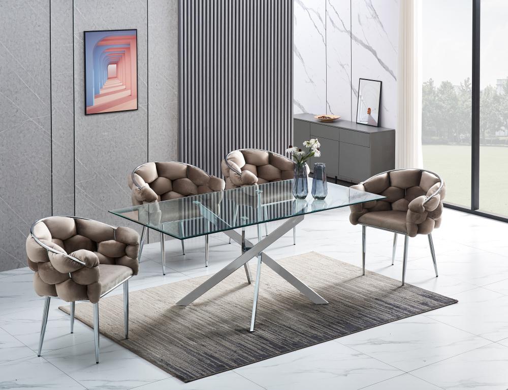 Table Repas JESSICA XXL Chrome et plateau en verre 180 cm 6 à 8 couverts
