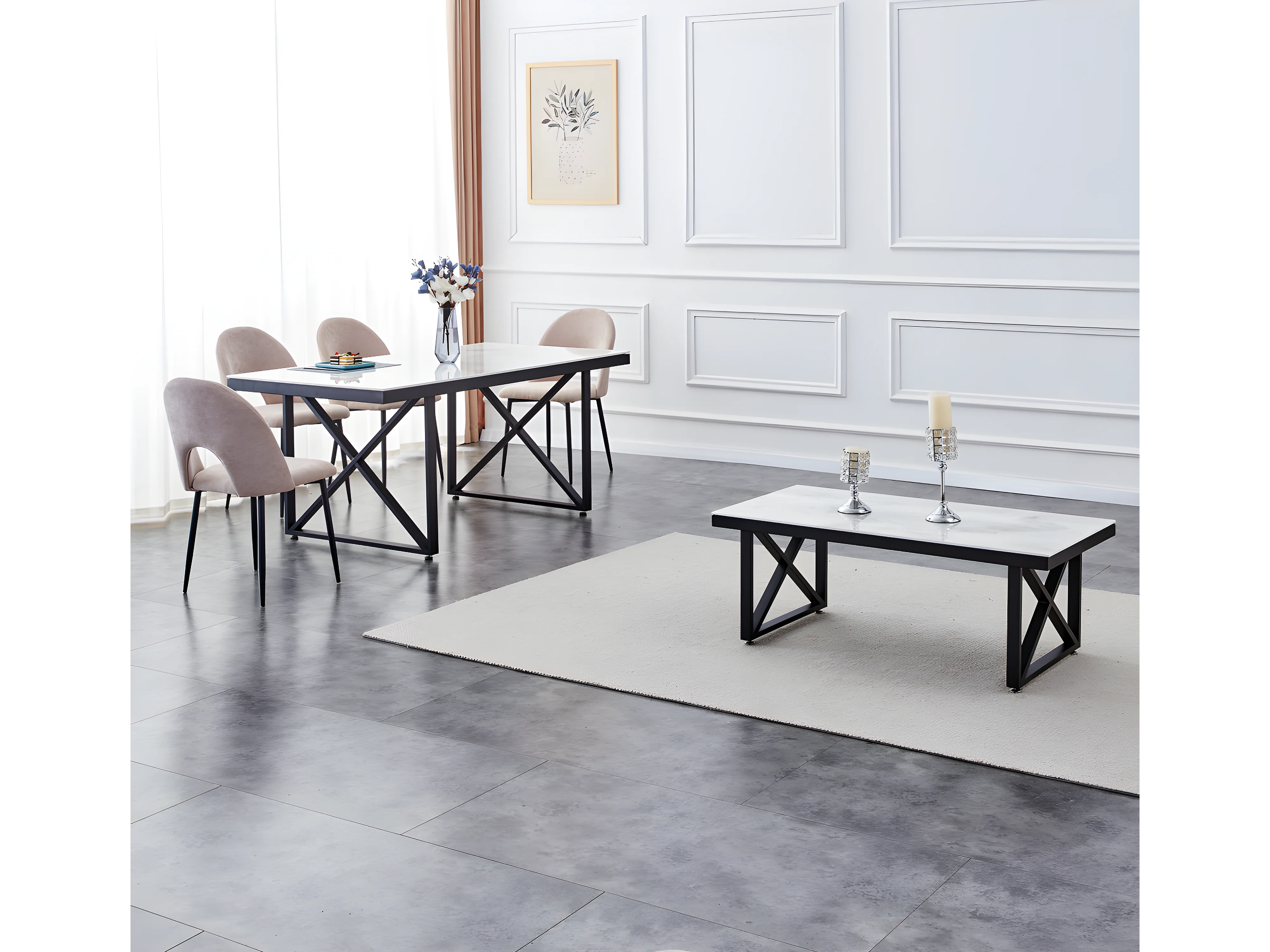 Table repas levanto 6 à 8 couverts plateau en verre marbré beige
