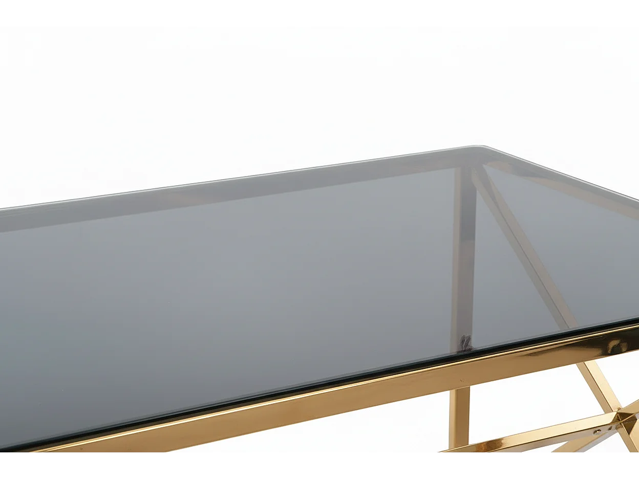 Table à Manger Design Verre Trempé Transparent & Doré – 150×90 cm