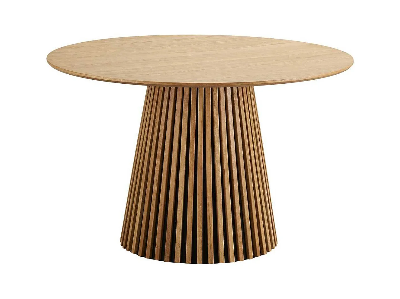 Table repas ronde Ø120cm Pied Central Relief MDF Placage Chêne clair - DUBLIN