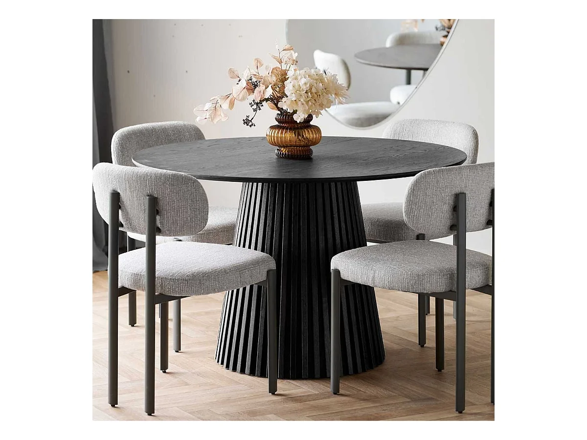 Table repas ronde Ø120cm Pied Central Relief MDF Placage Chêne noir - DUBLIN