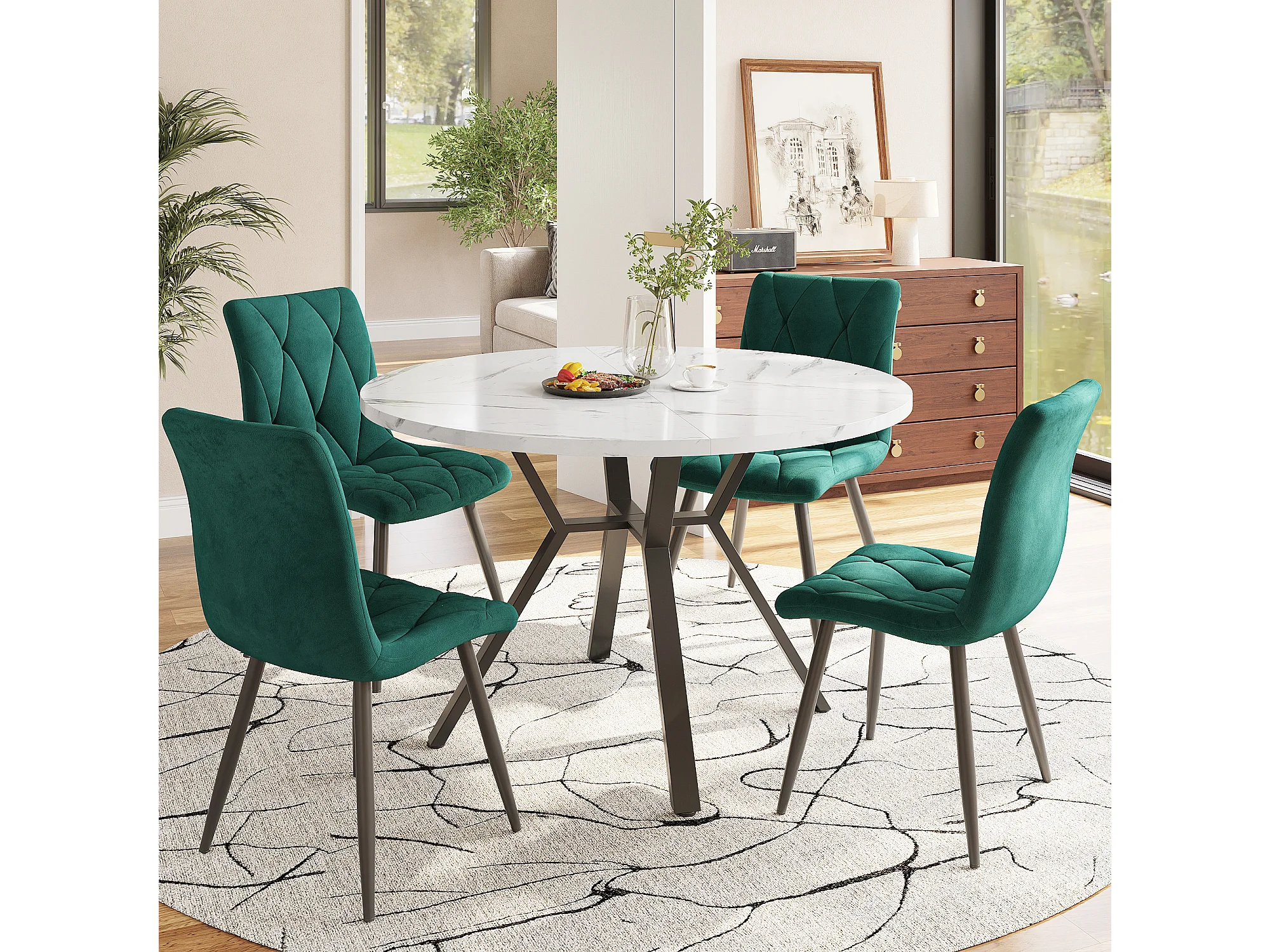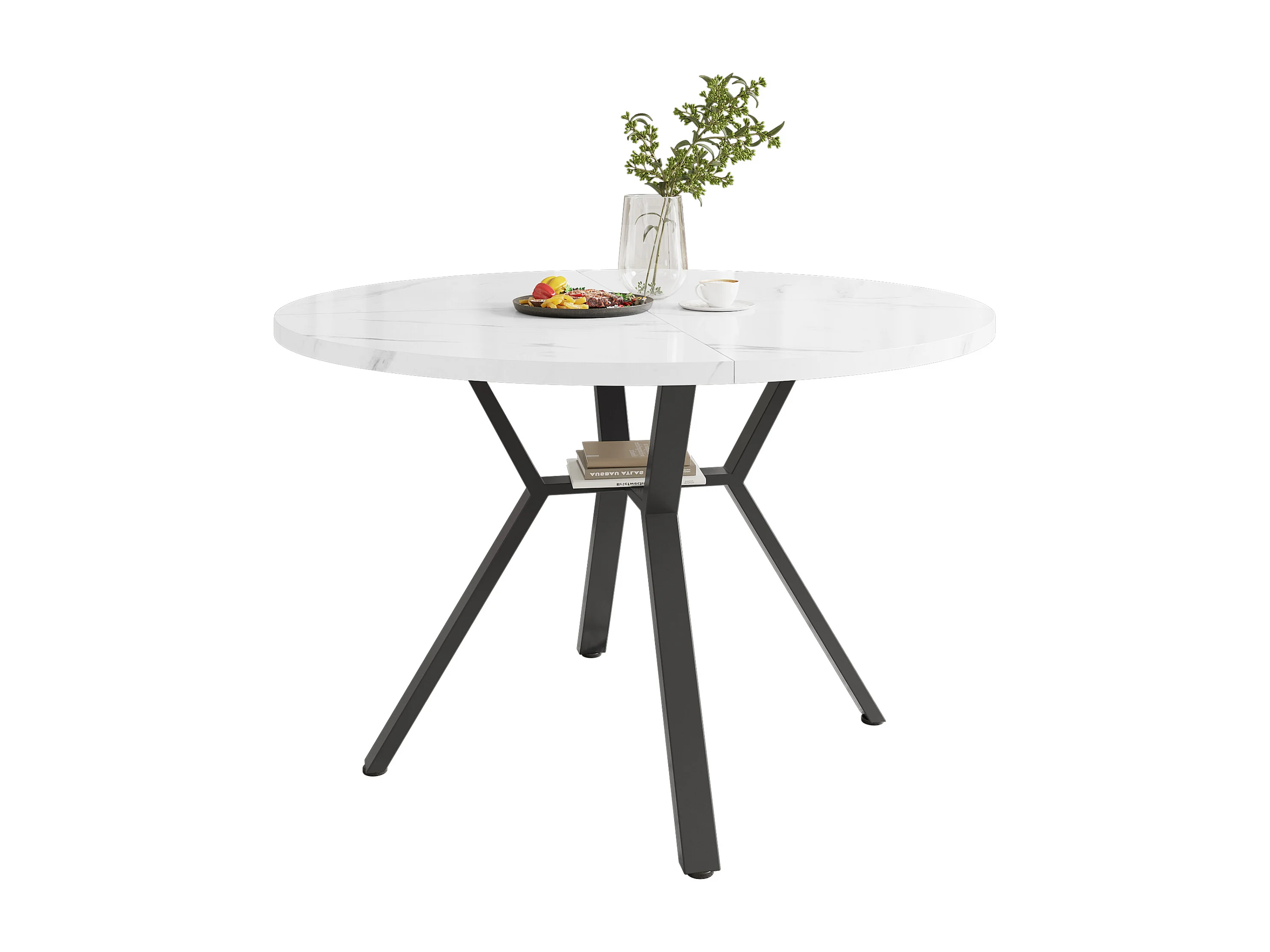 Table ronde 1 m, Plateau effet marbre, Piétement métal X noir, Cuisine/Salon, Stable et résistant