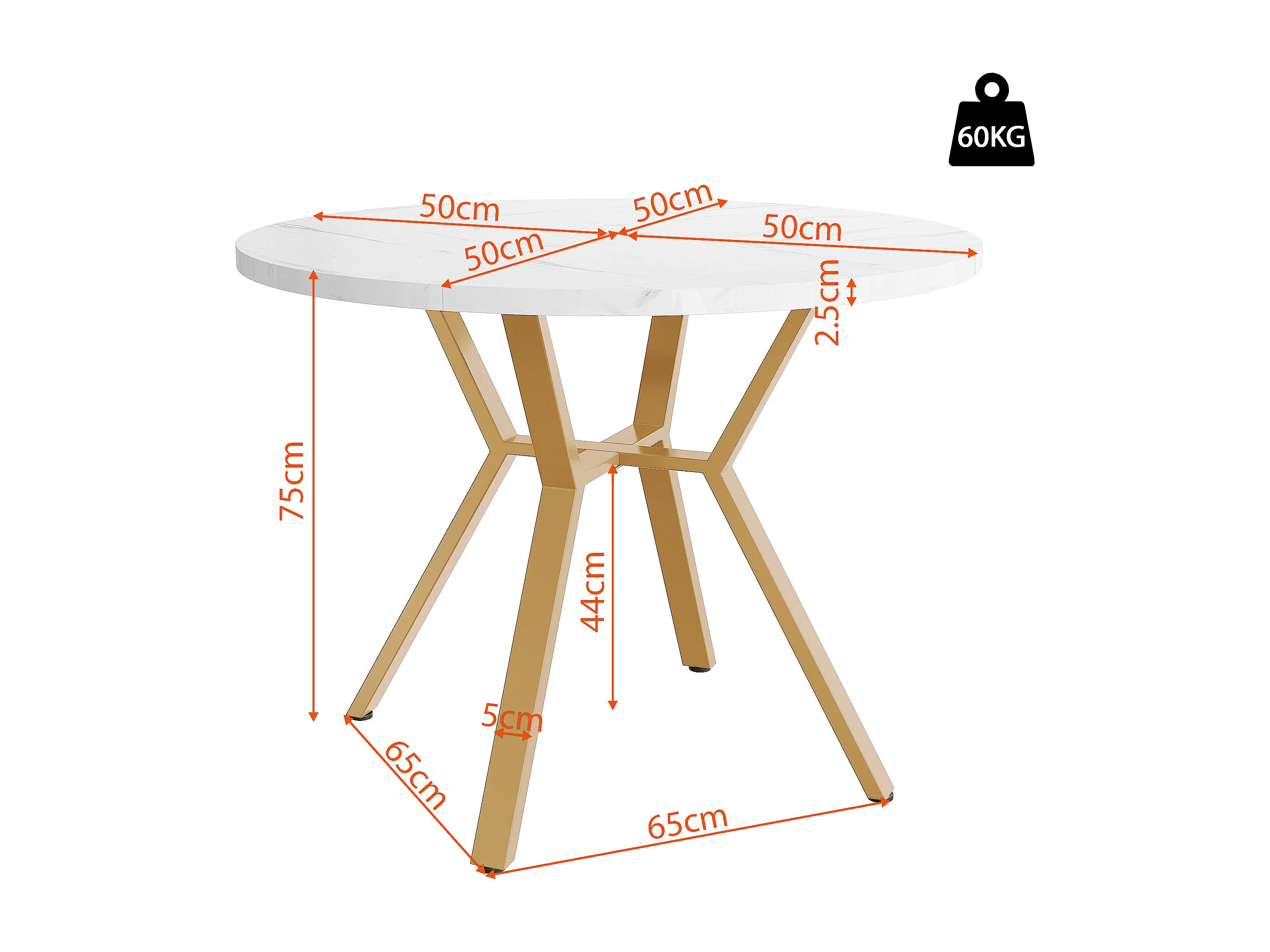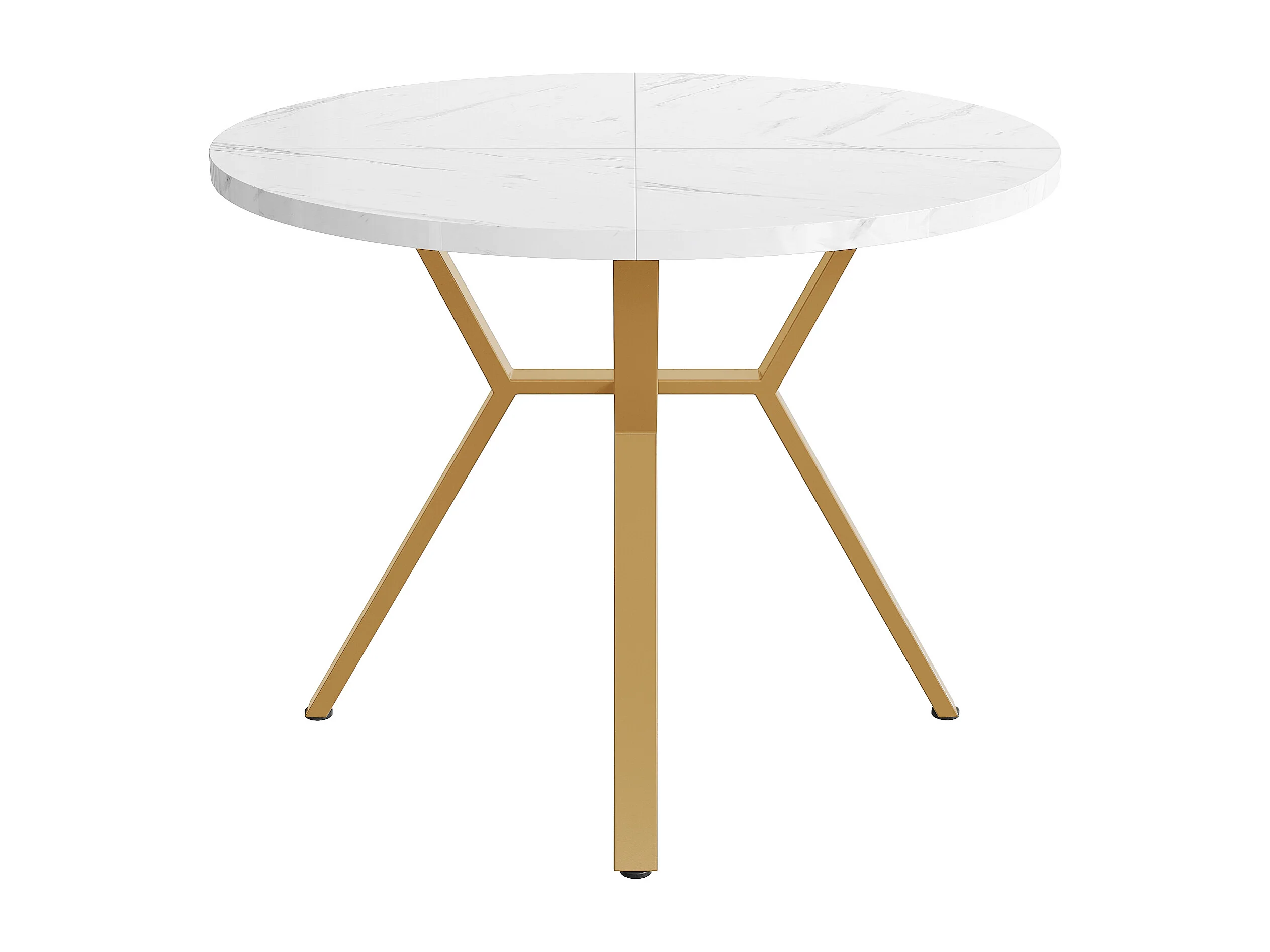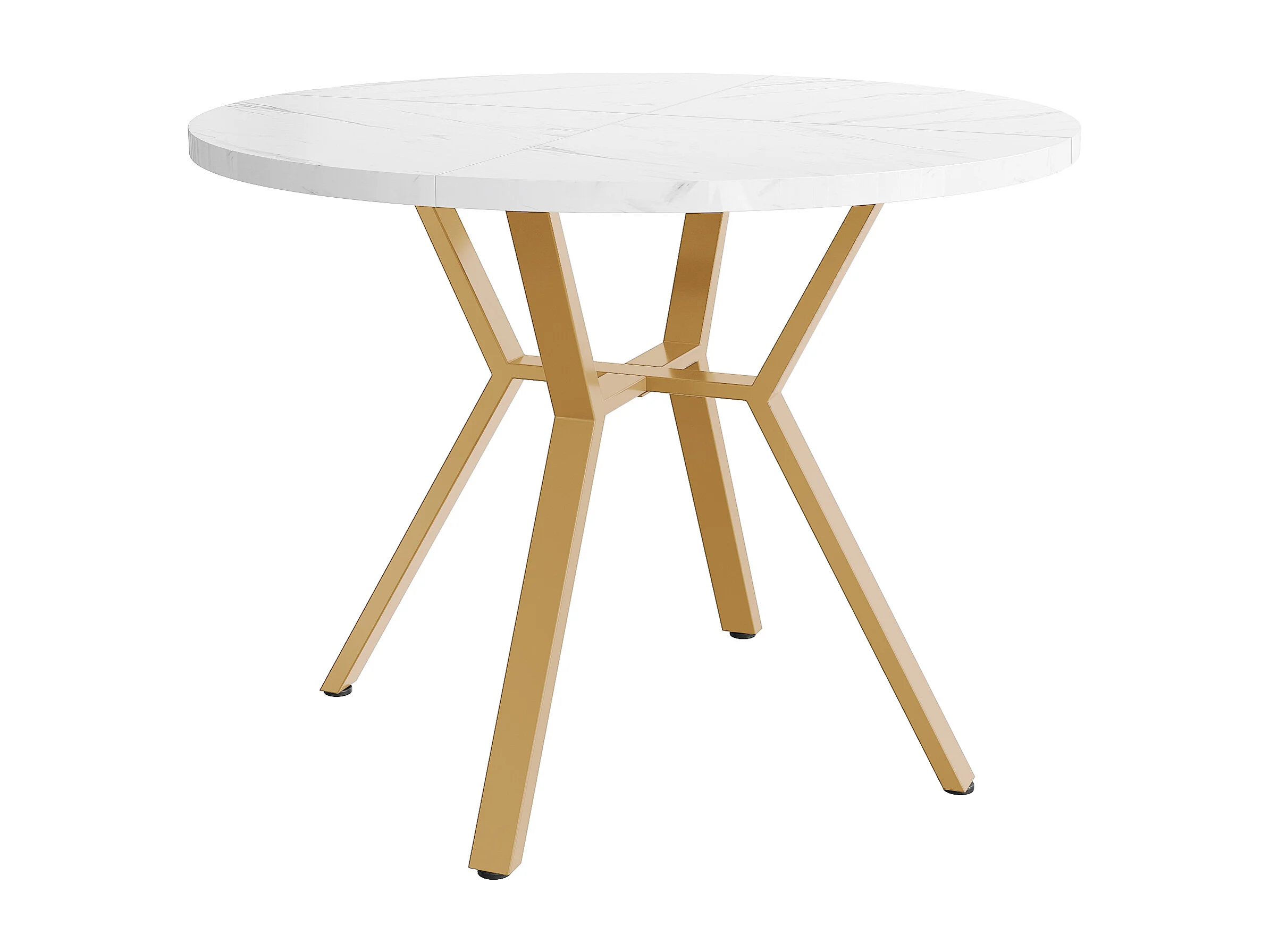 Table ronde 1 m, Plateau effet marbre, Piétement métal X noir, Cuisine/Salon, Stable, Résistant, Pieds dorés