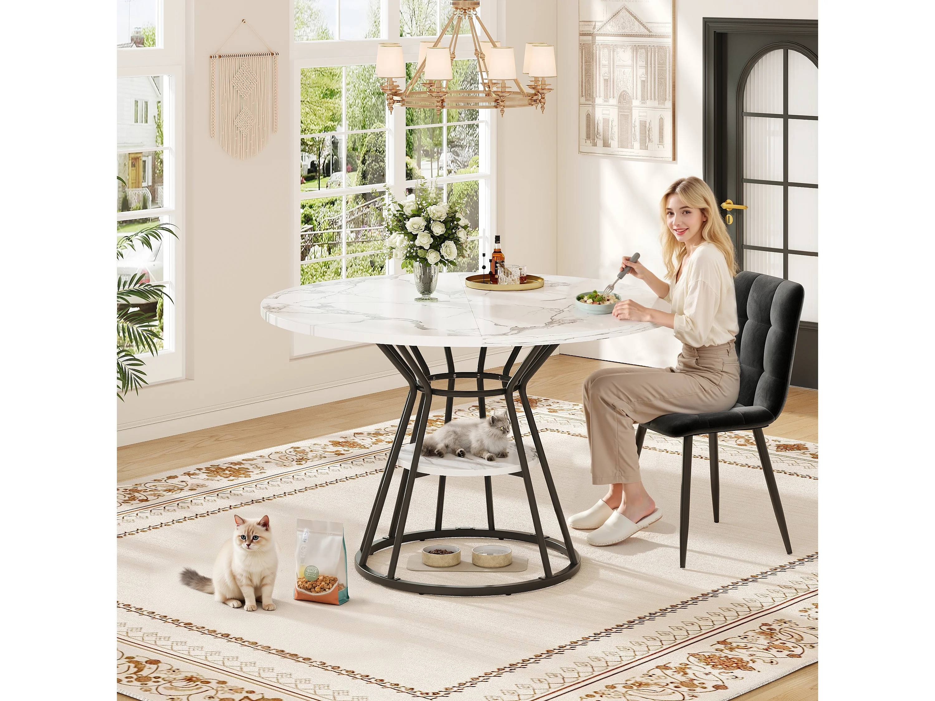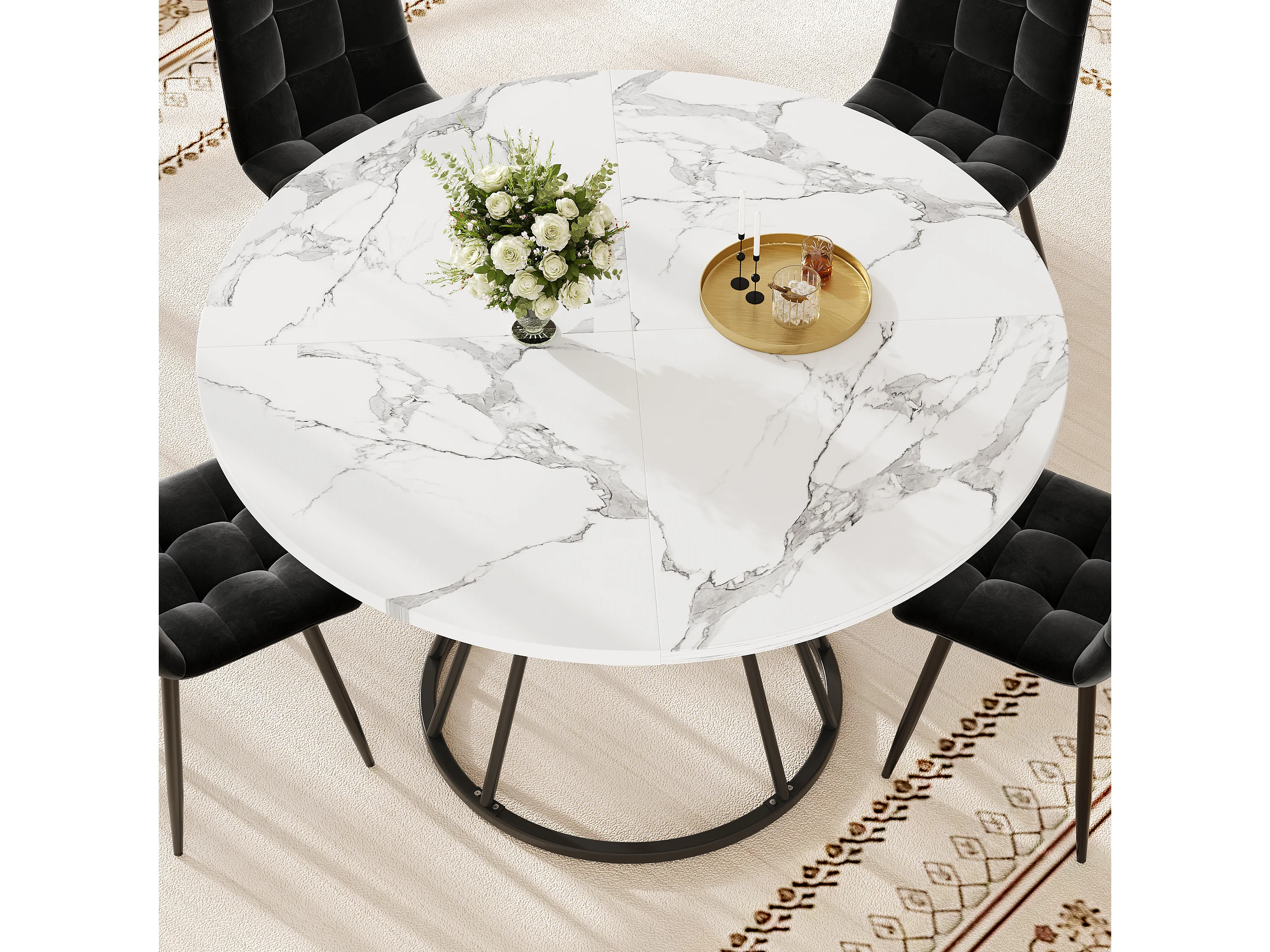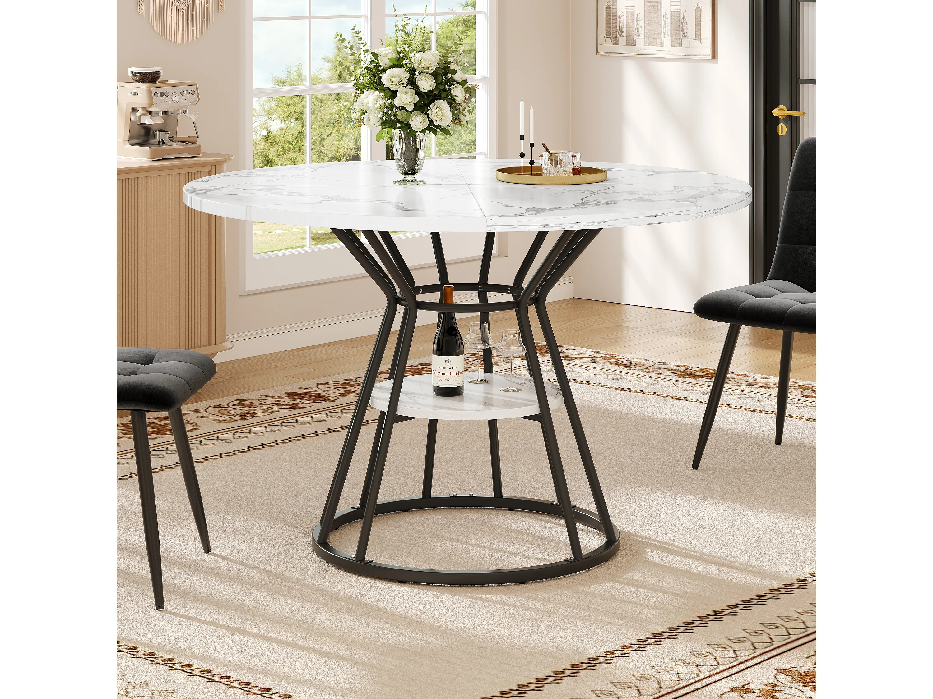 Table ronde 1 pièce, Cuisine/Salon, Plateau effet marbre, Piétement métal, Pieds dorés/noirs