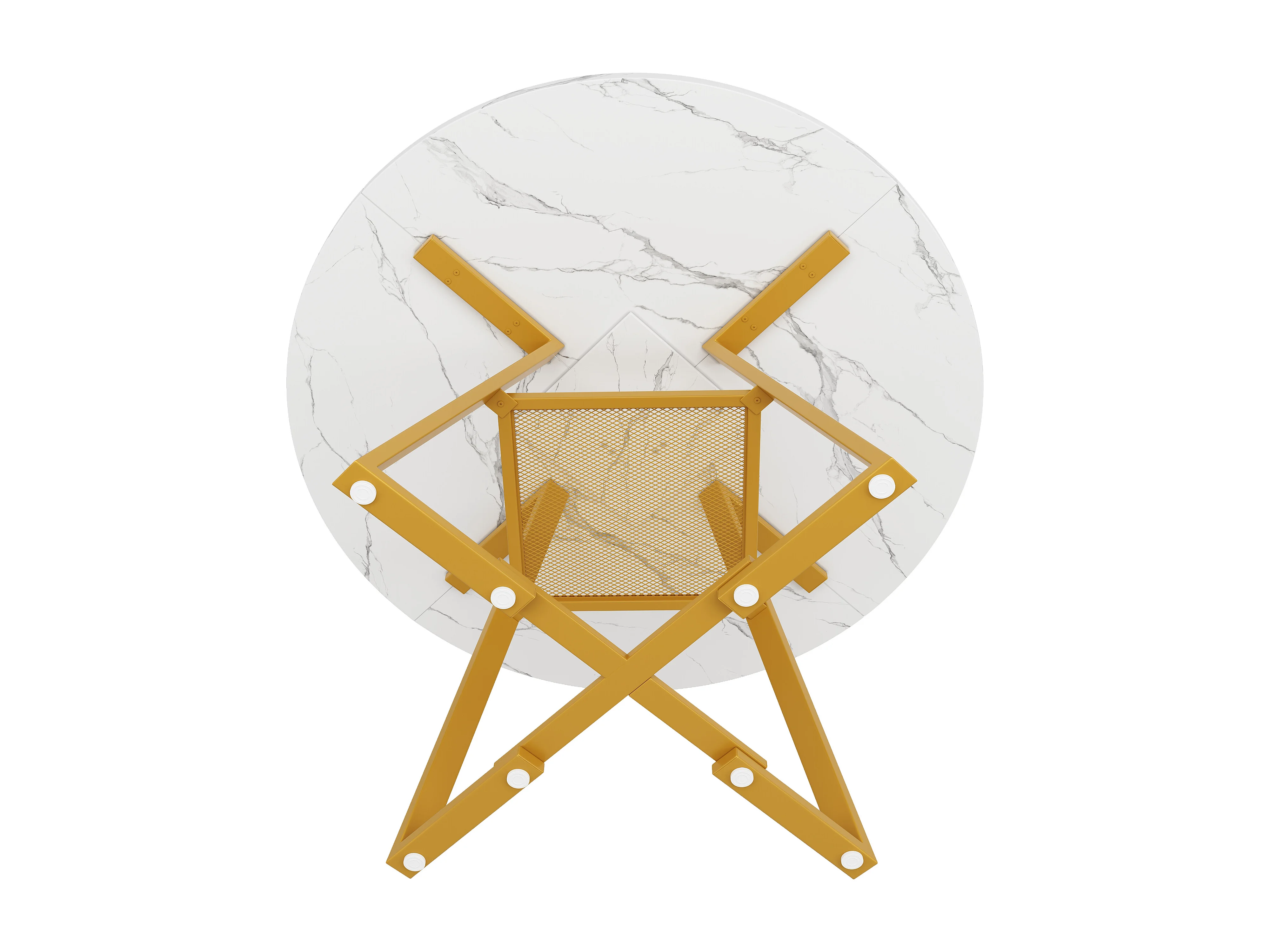 Table ronde 1 pièce, Cuisine/Salon, Plateau effet marbre, Piétement métal, Pieds noirs/blancs