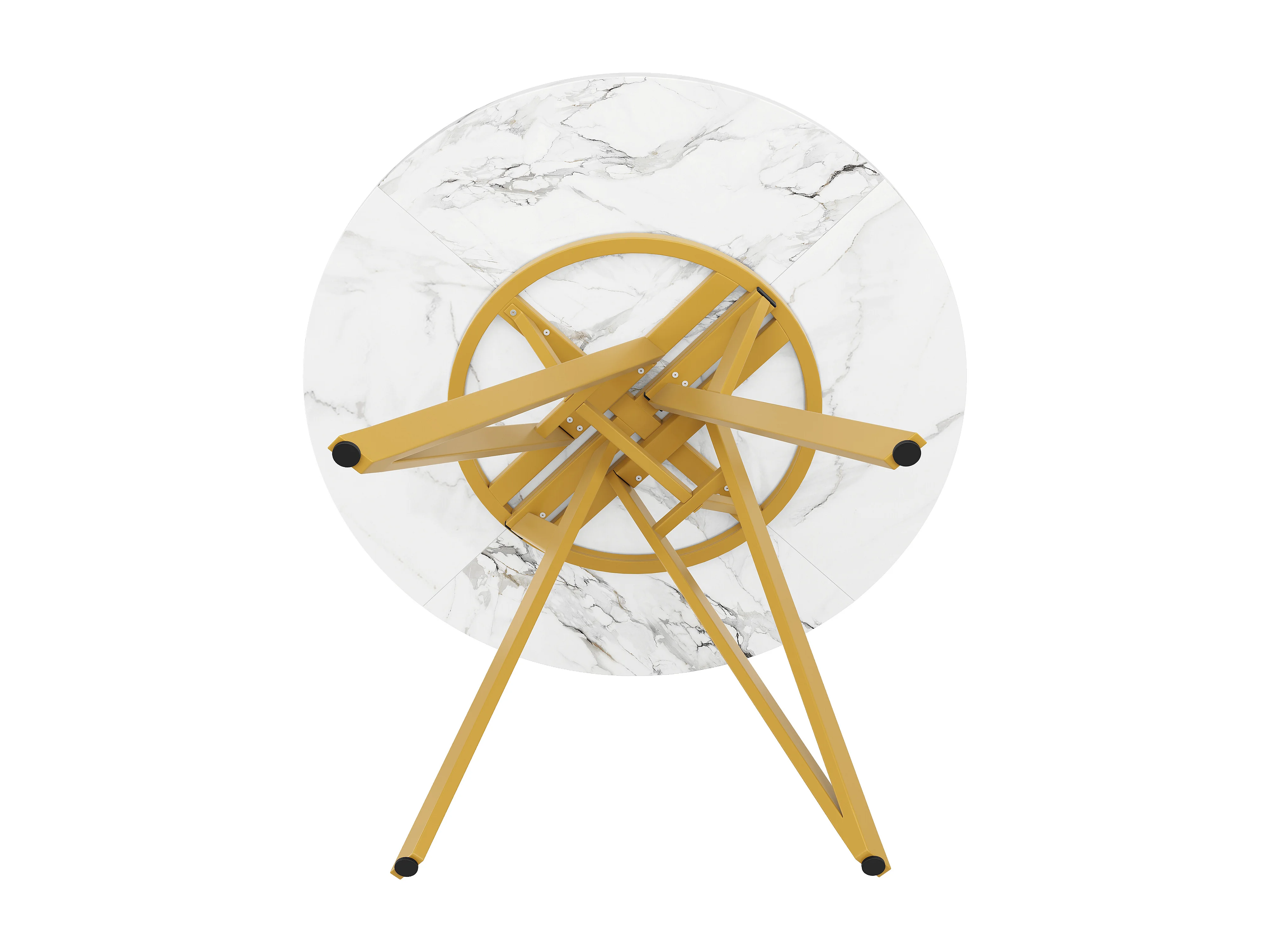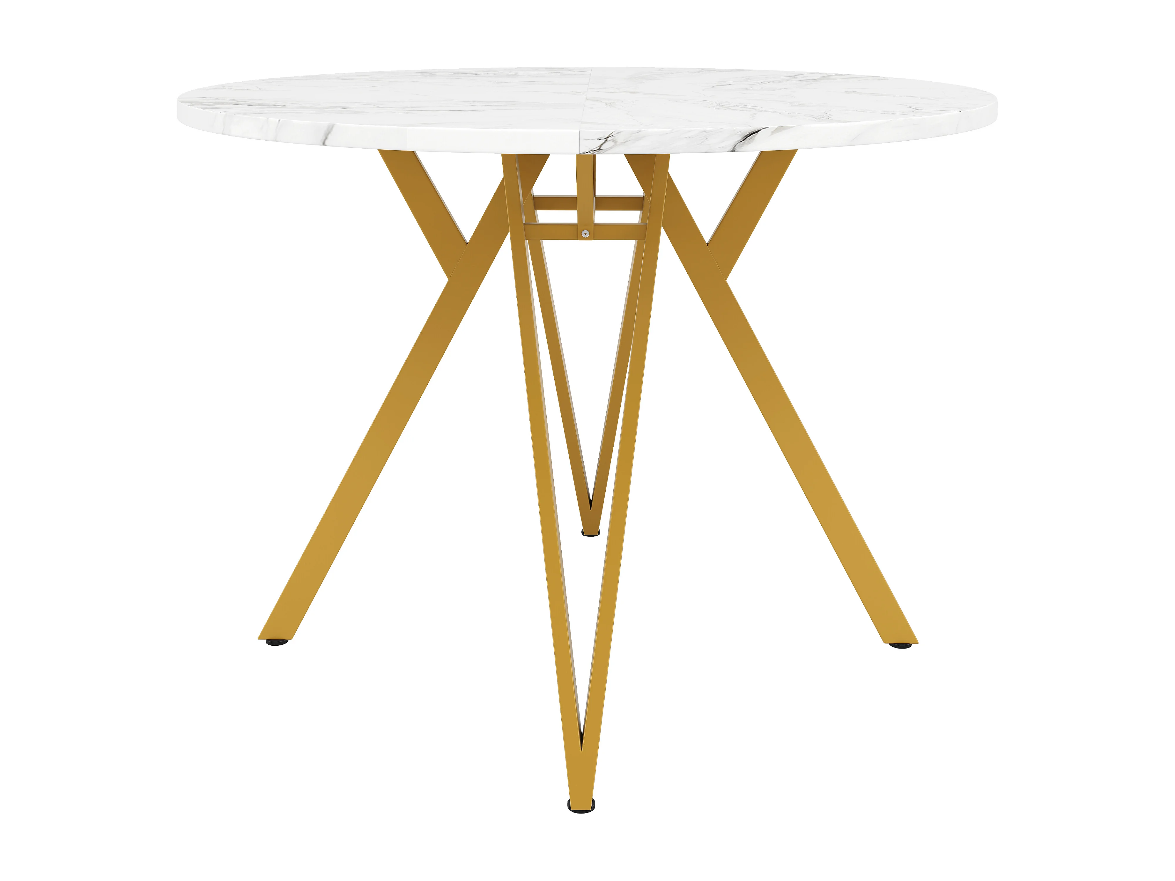 Table ronde 100×100×76cm, Plateau MDF marbré, Piétement métal stylé, Cuisine/Salon, Pieds dorés, 4 personnes