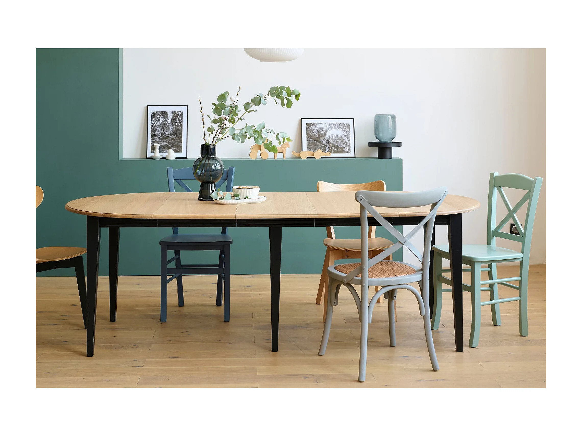 Table ronde 6 pieds fuseau D105 + 3 rallonges bois - VICTORIA