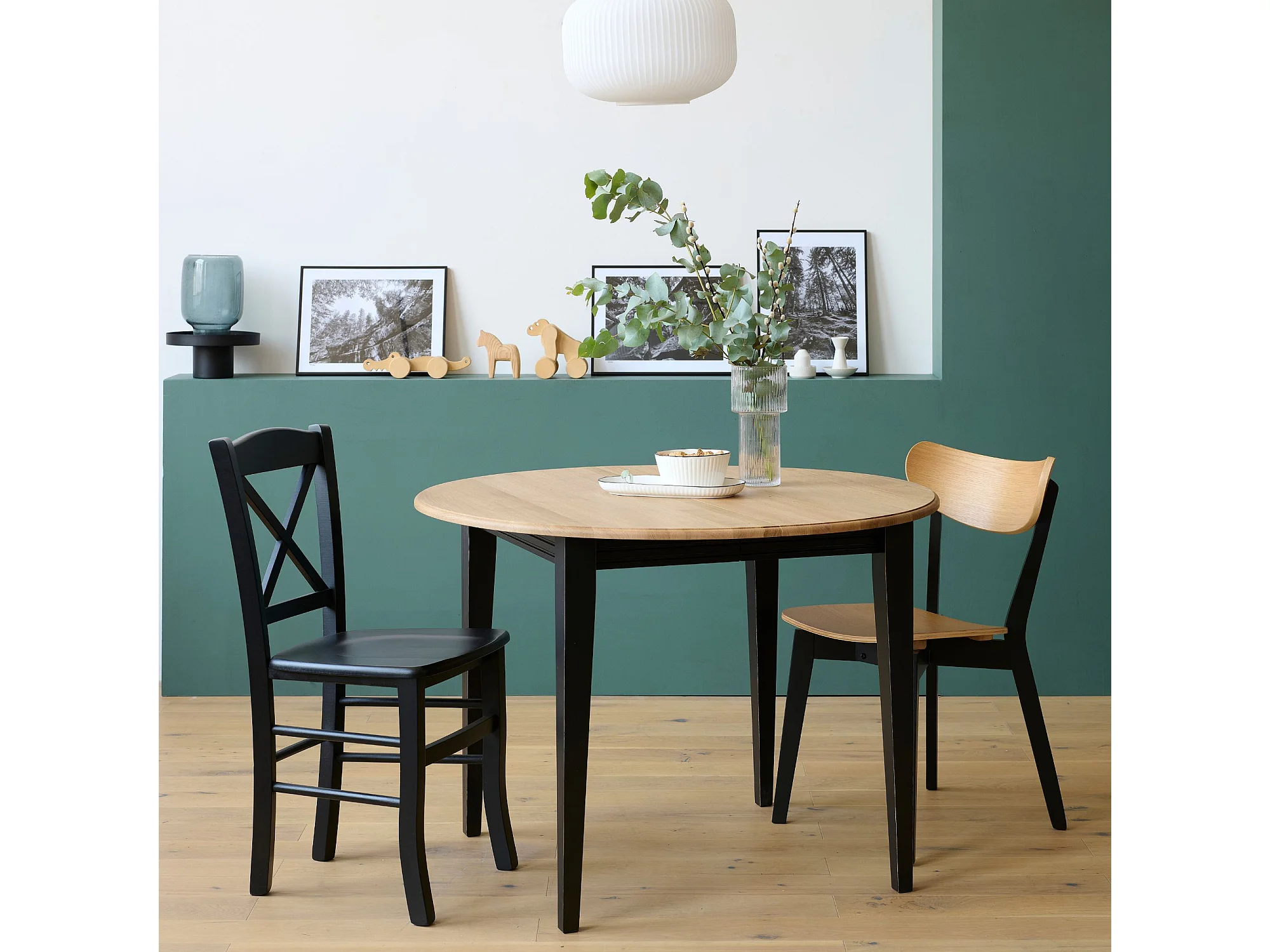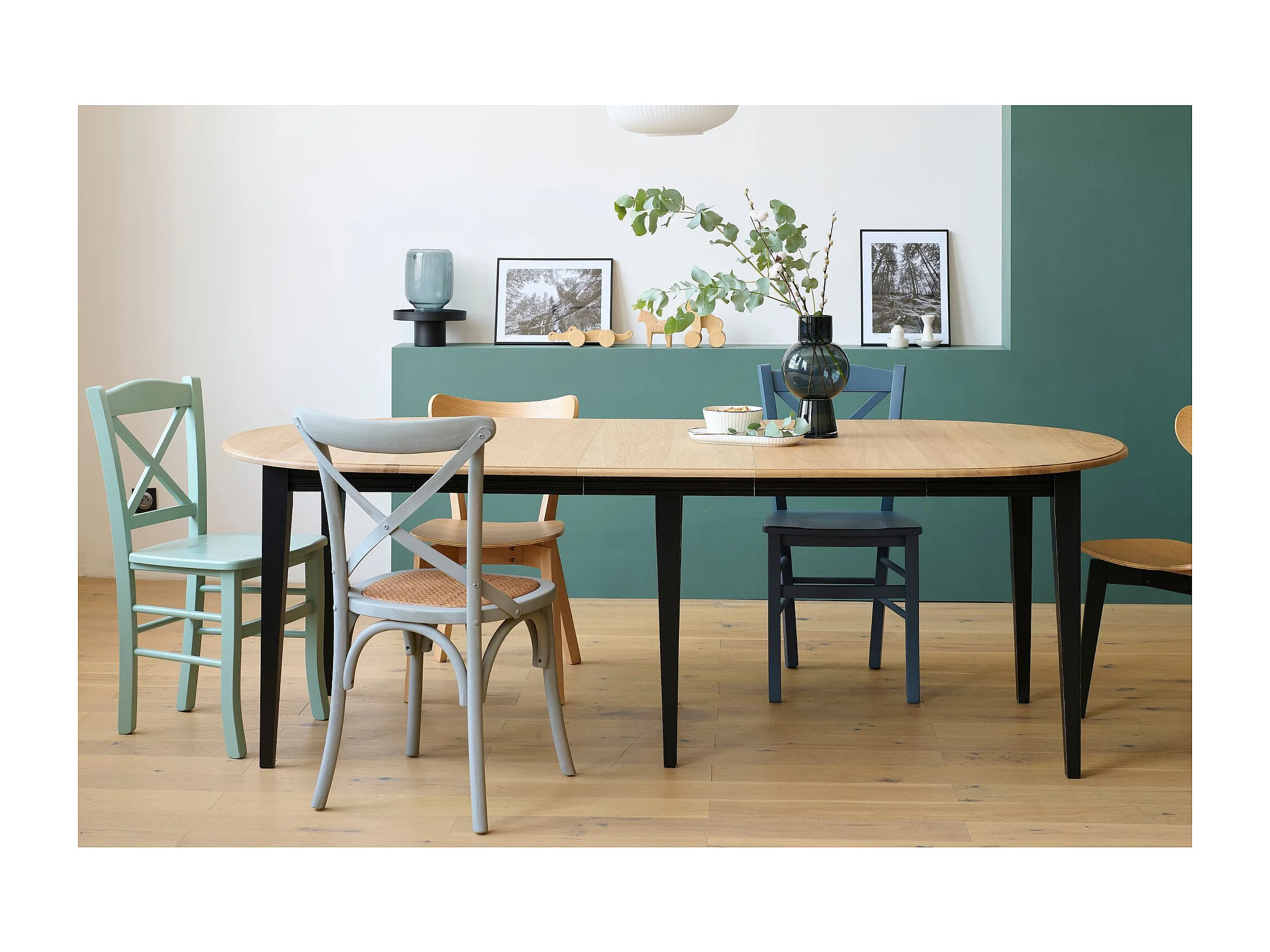 Table ronde 6 pieds fuseau D115 + 3 rallonges bois - VICTORIA