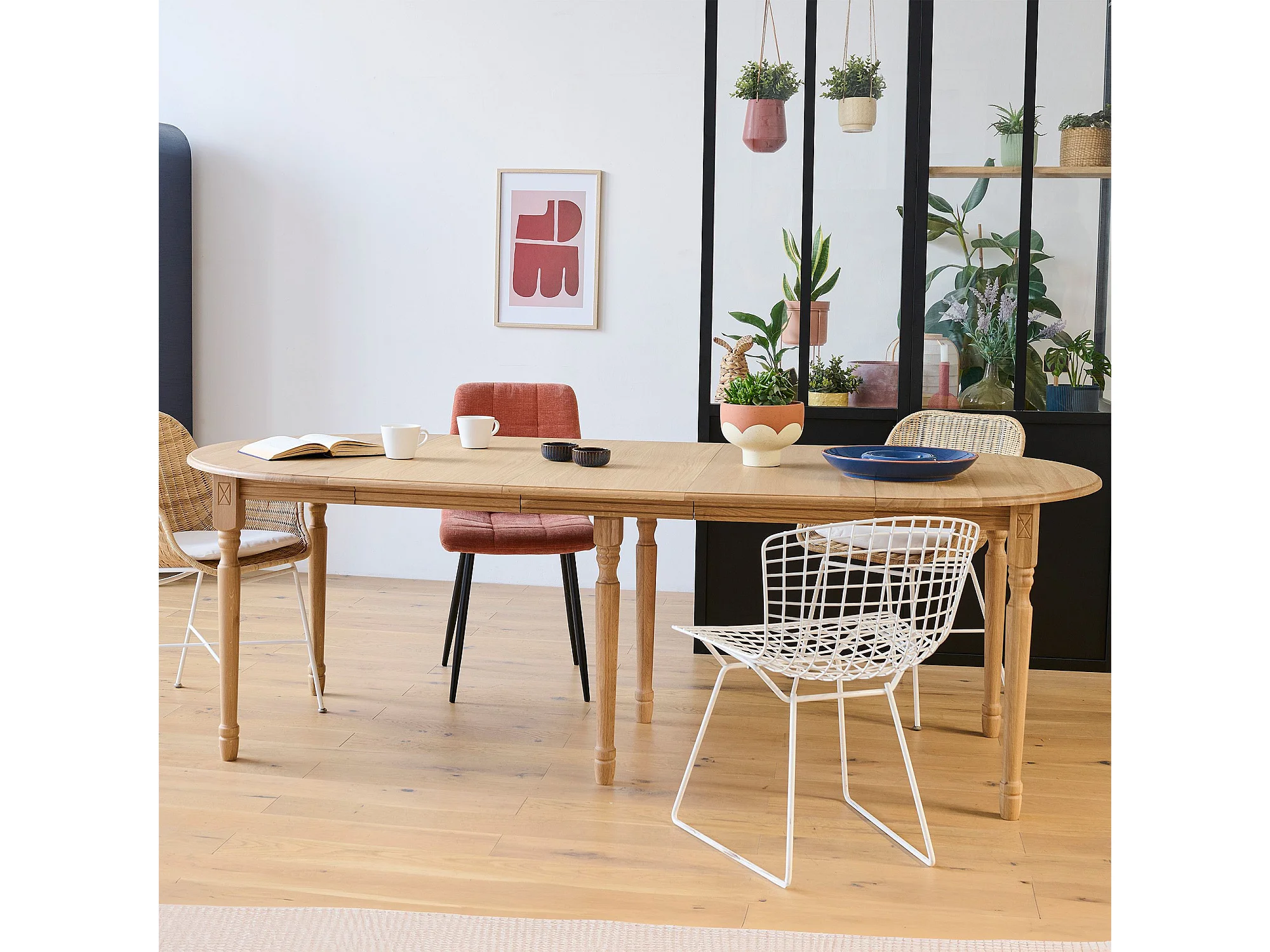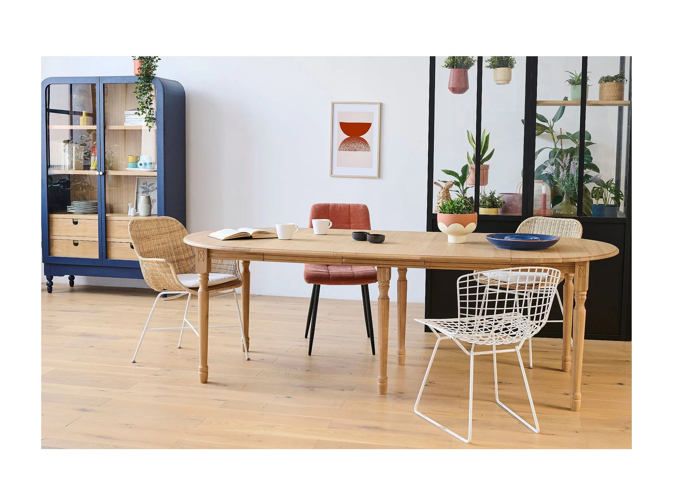 Table ronde 6 pieds tournés D115 + 3 rallonges bois - VICTORIA