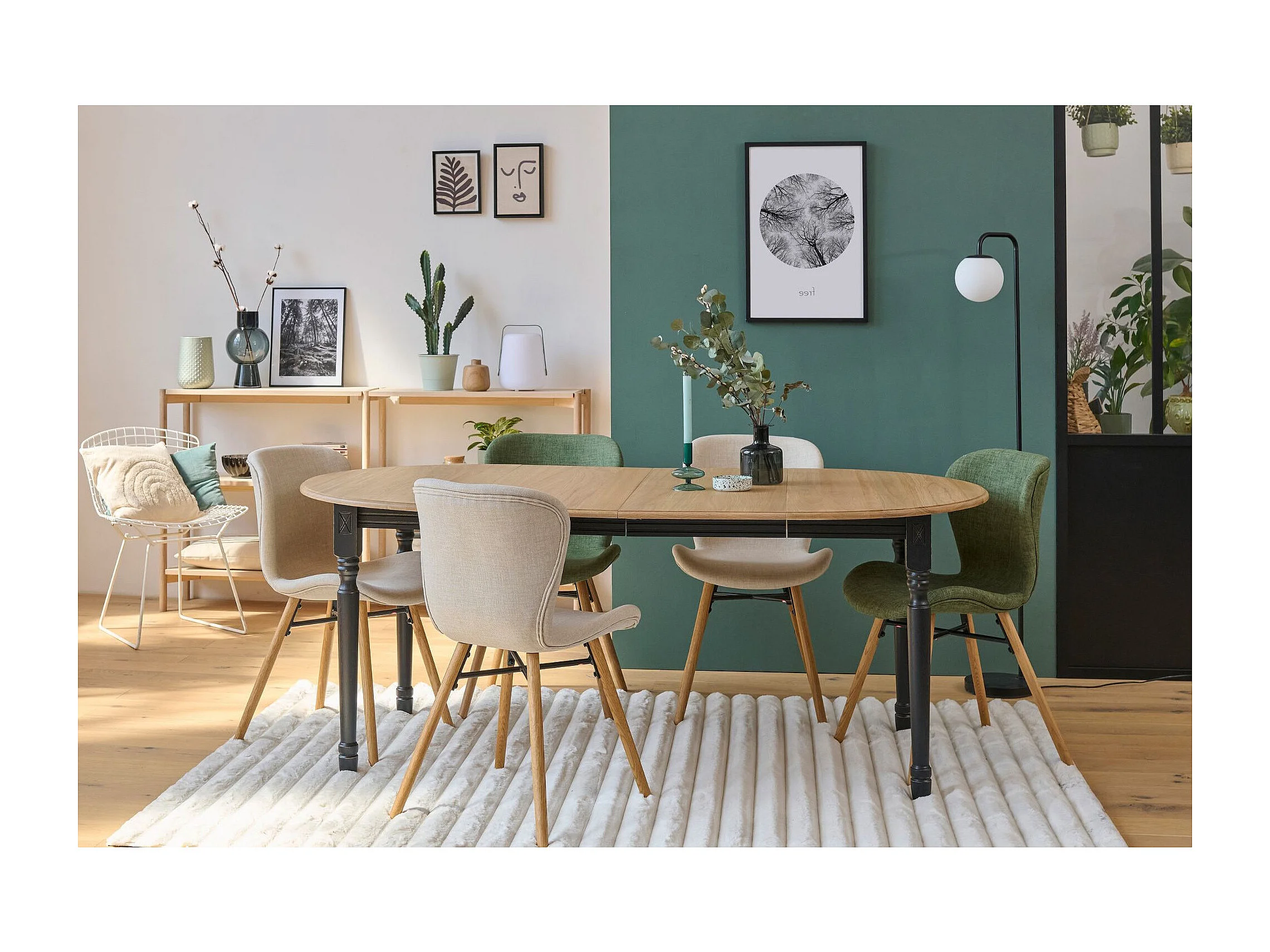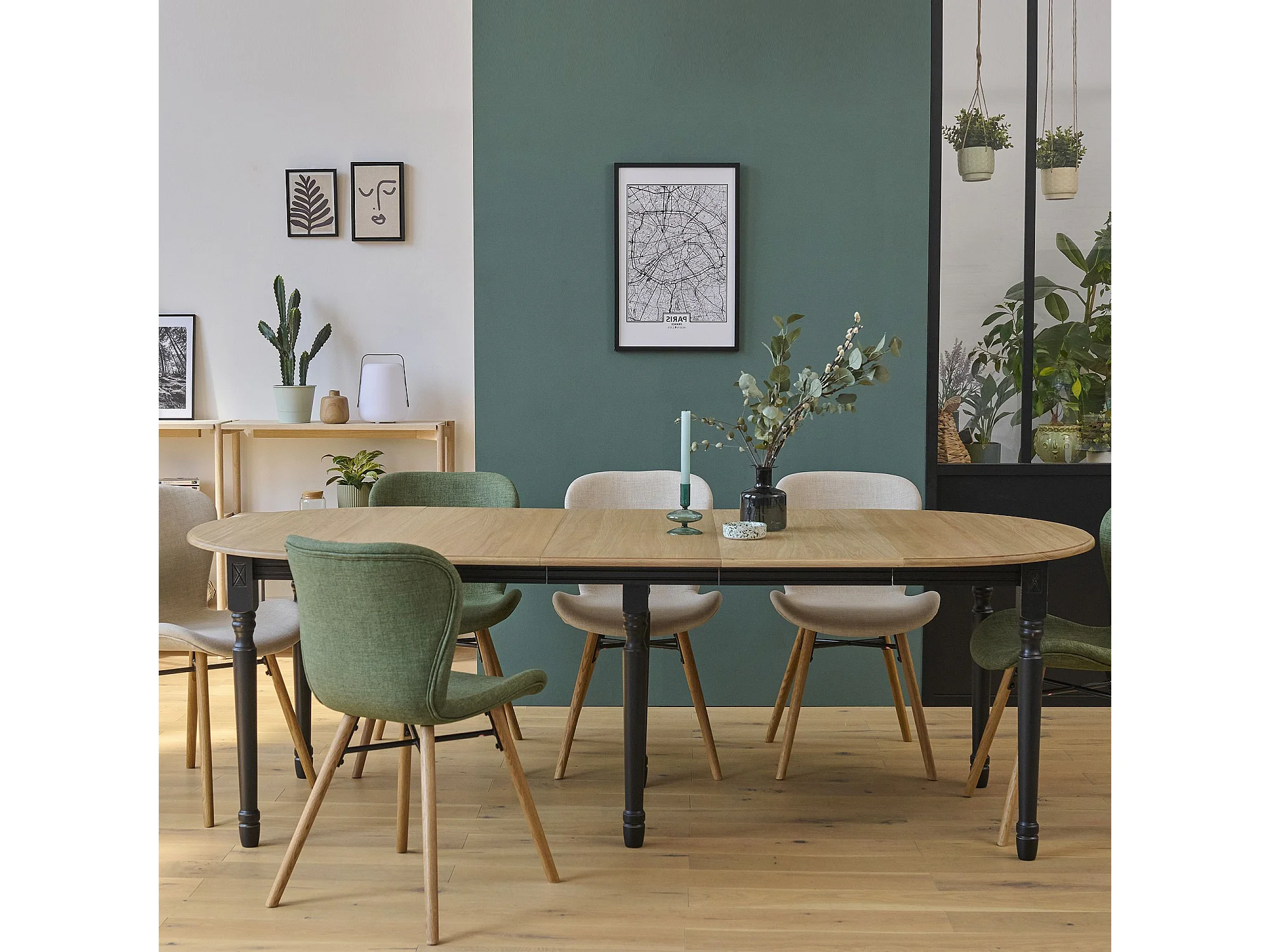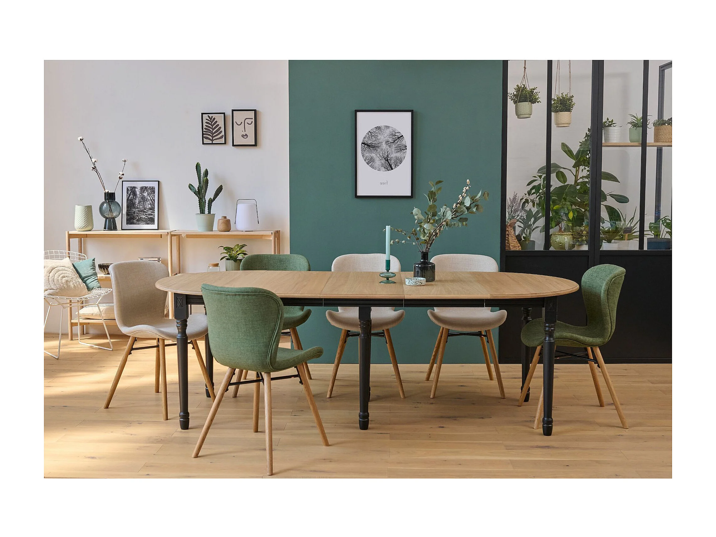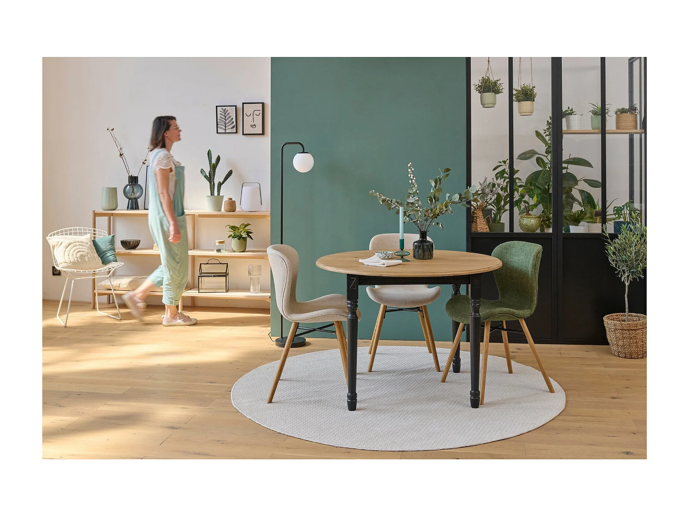 Table ronde 6 pieds tournés D115 + 3 rallonges bois - VICTORIA