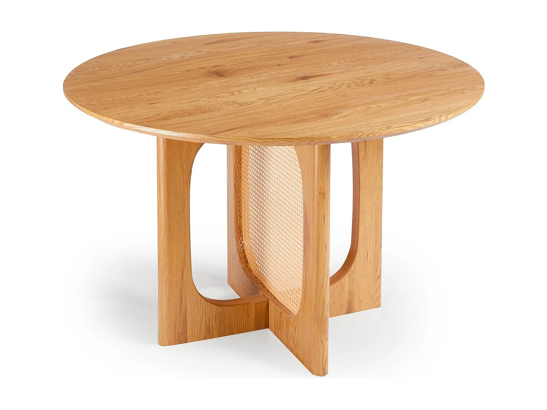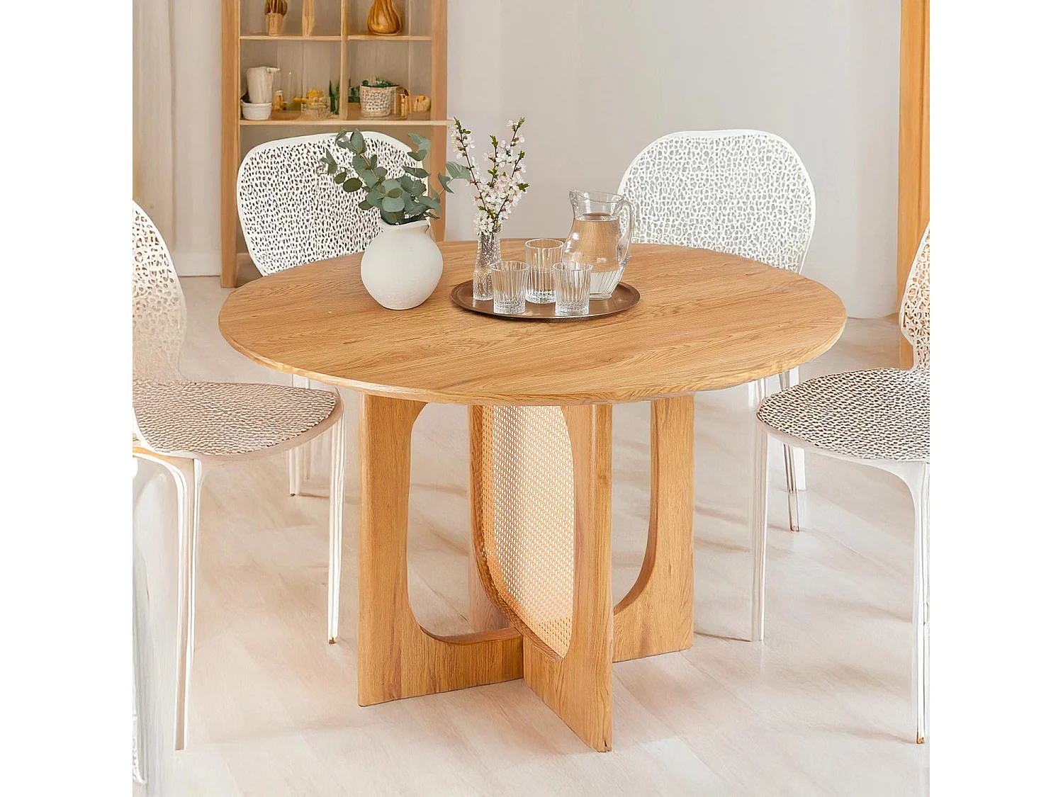 Table ronde avec cannage D120cm Bohemia Chêne clair et Rotin