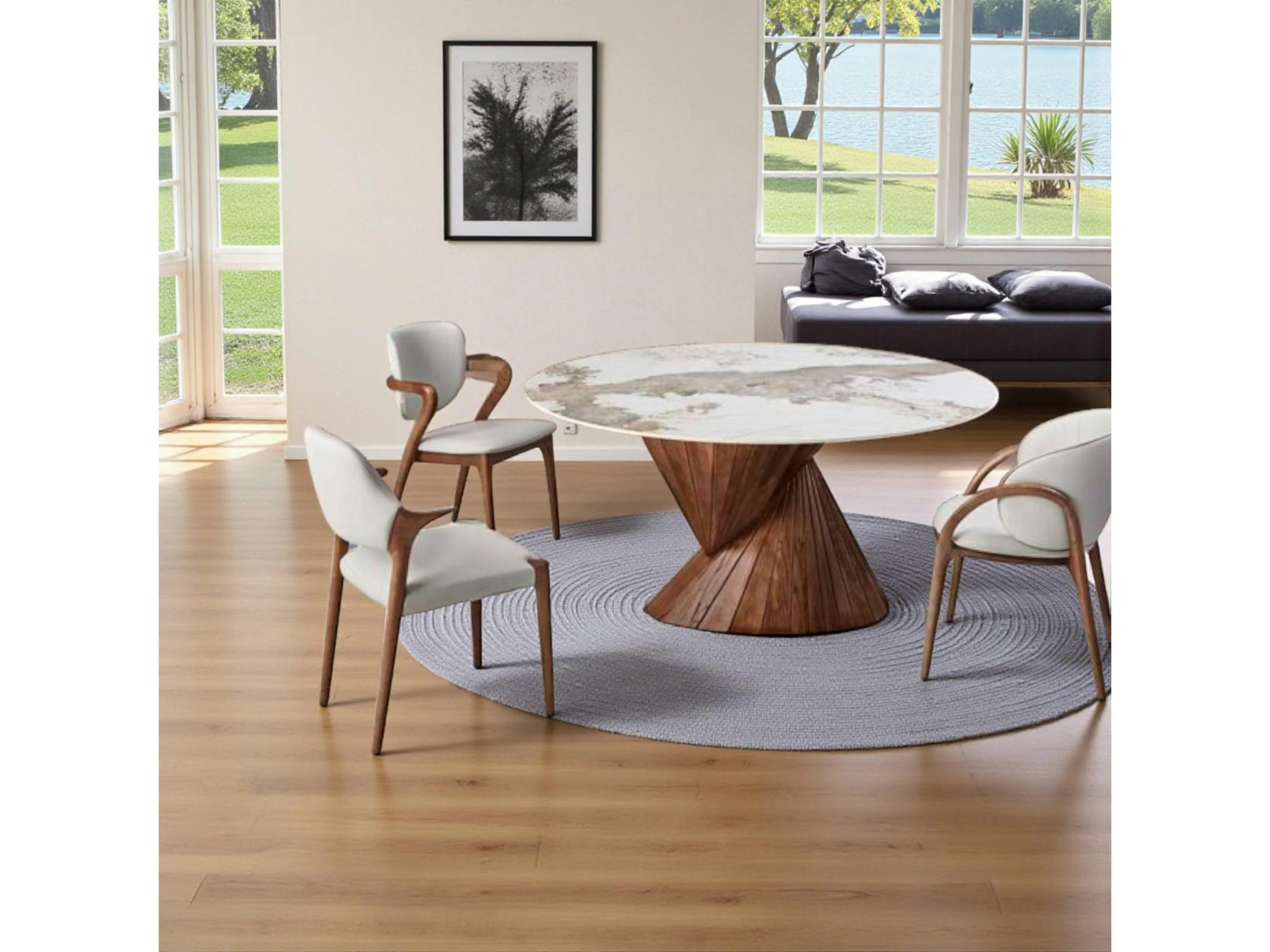 Table ronde céramique pied conique bois marron ⌀160 cm ALDER