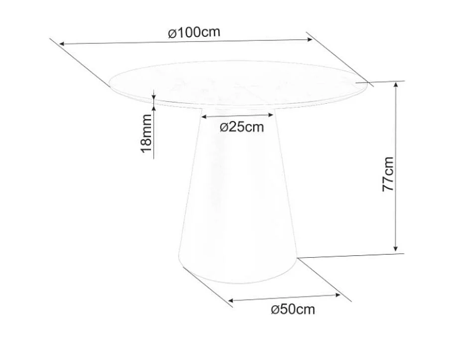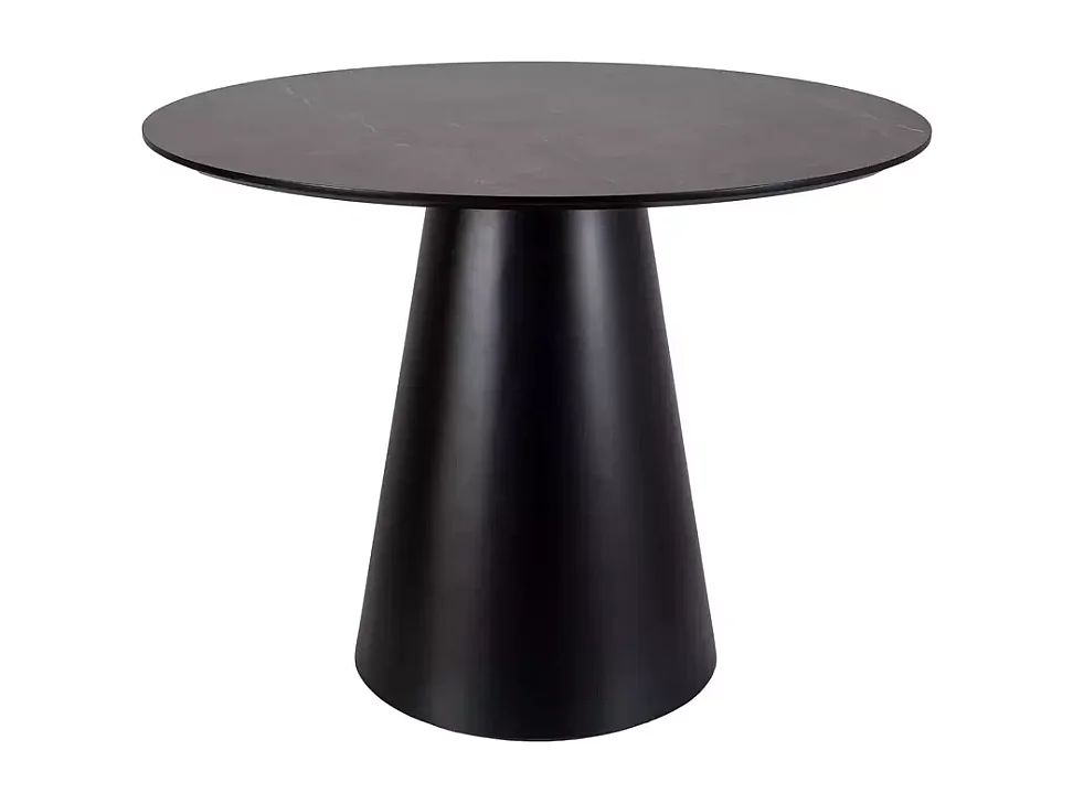 Table ronde de 100 cm gris effet marbre avec pied noir mat Sorin
