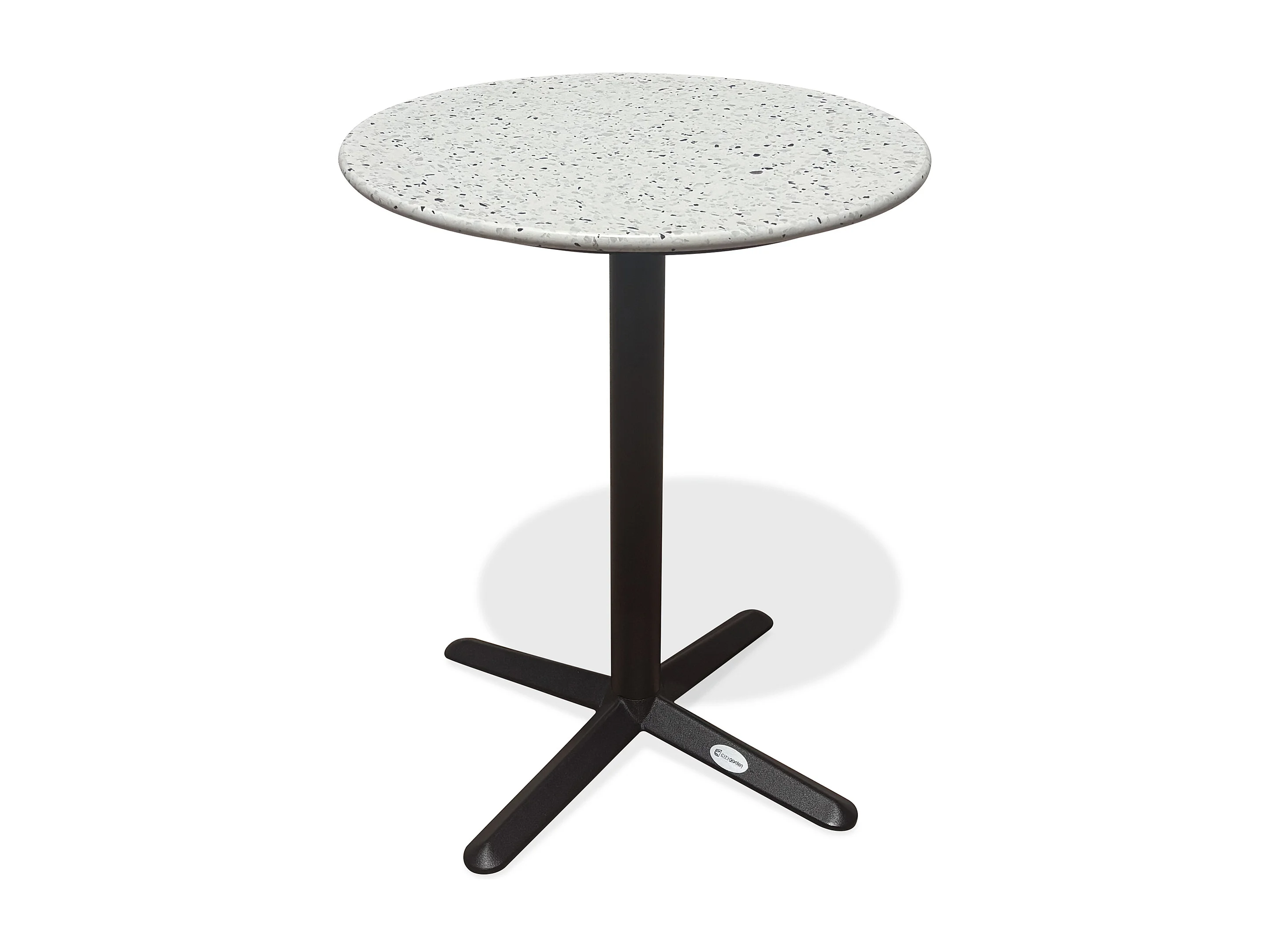 Table ronde de jardin en acier et plateau terrazzo