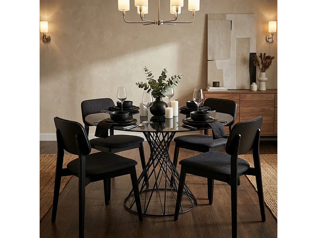 Table ronde design moderne en verre noir 120cm pour salon Naji