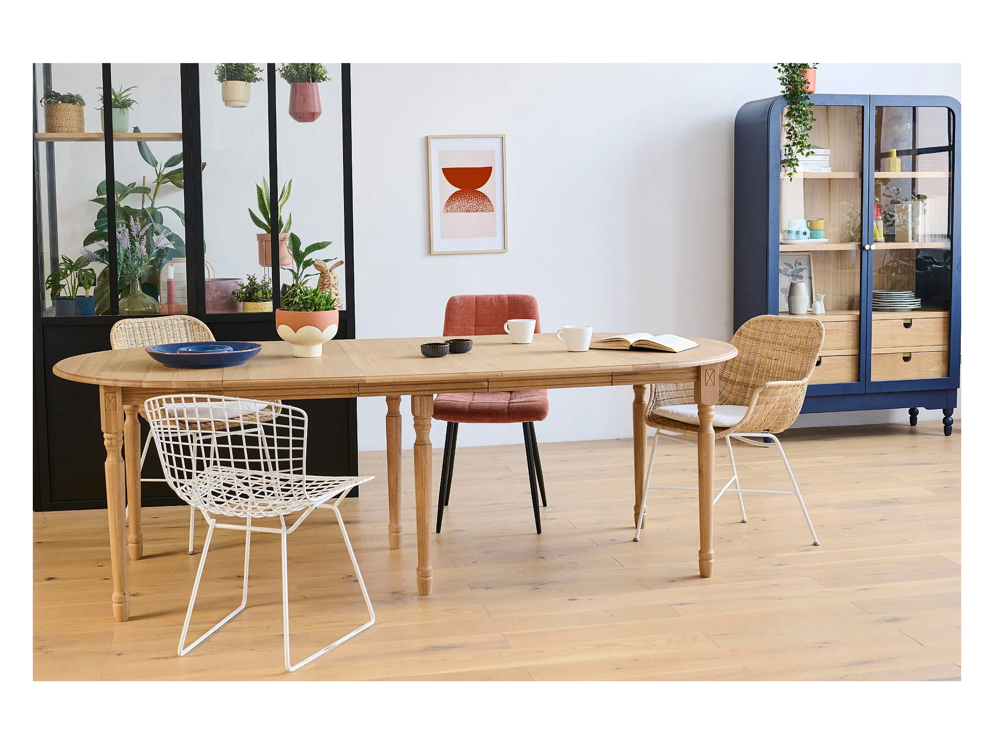 Table ronde en bois 6 pieds tournés D105 + 3 rallonges bois - VICTORIA