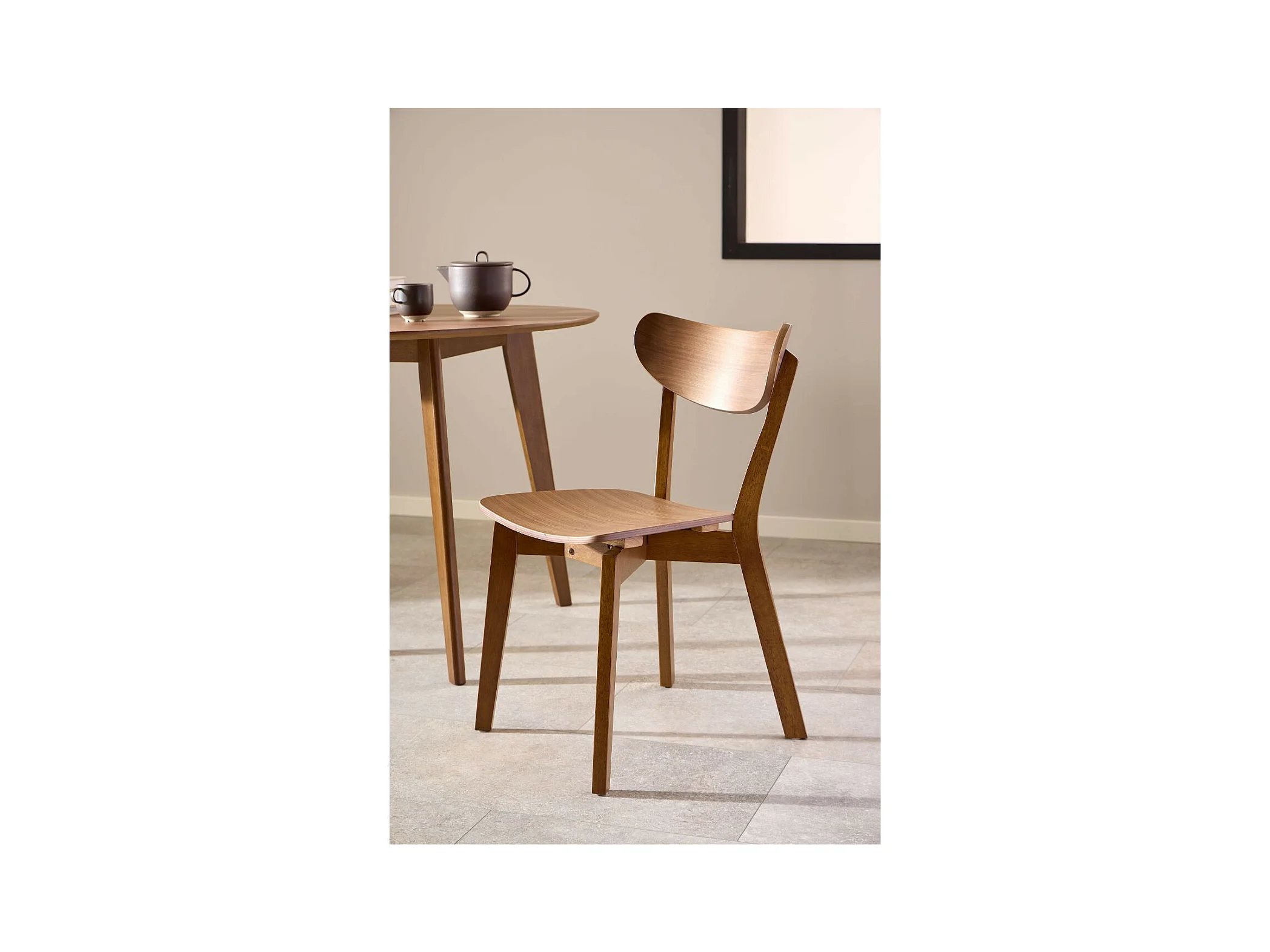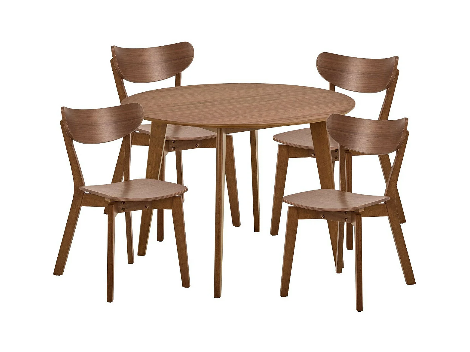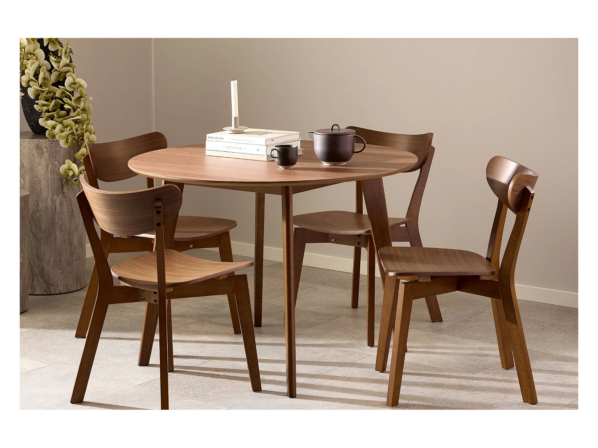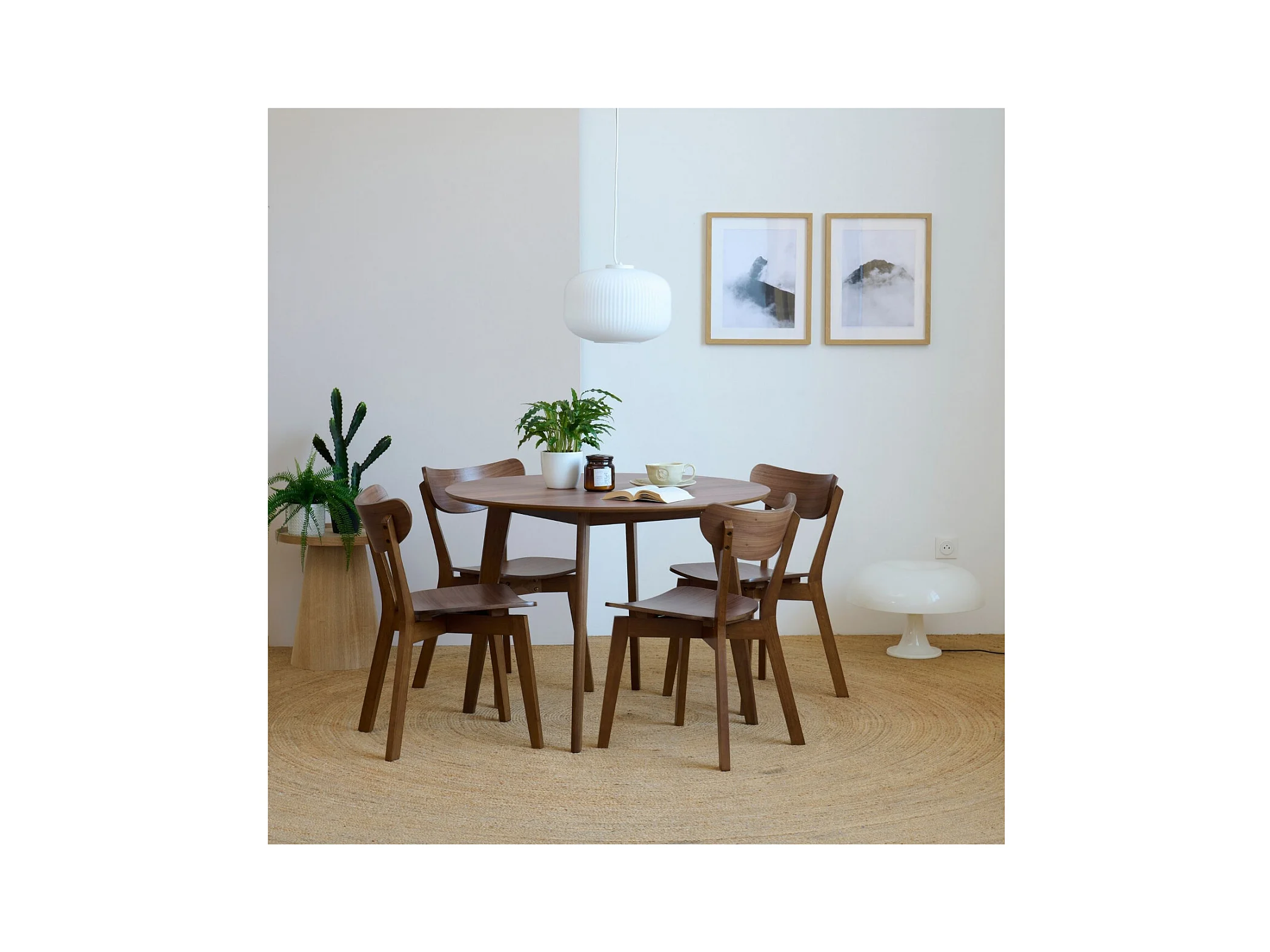 Table ronde en bois noyer D105 + 4 chaises noyer - LETA
