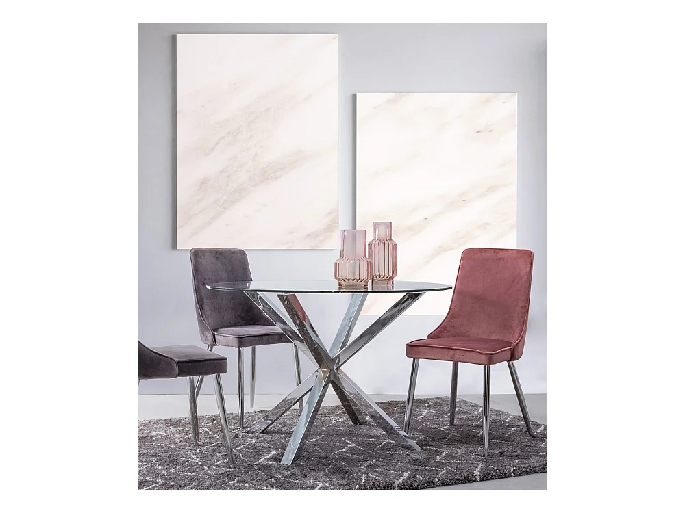 Table ronde en verre avec pied en acier diamètre 114 cm - MAY