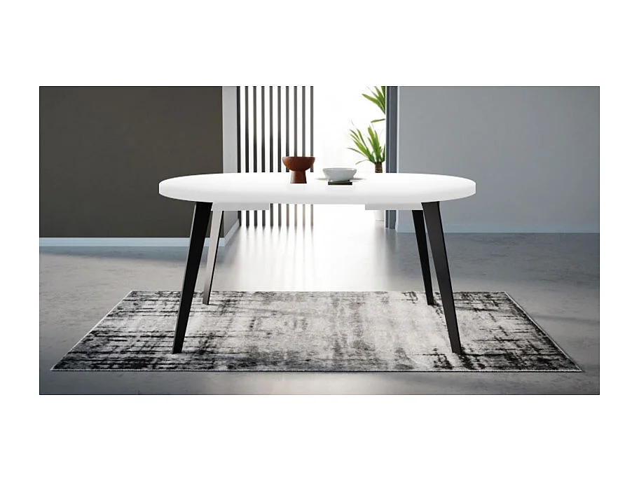 Table ronde extensible 110 à 155 cm blanc pieds métal - VANESSA