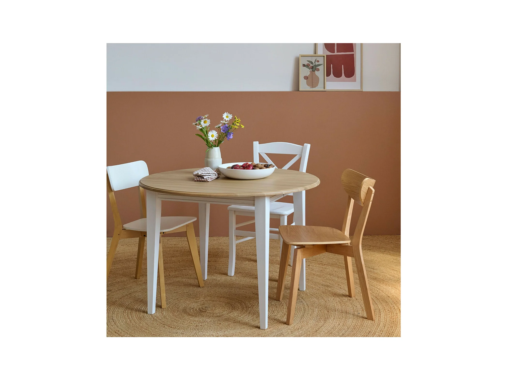 Table ronde extensible bois D105 avec 1 allonge et pieds fuseau - VICTORIA